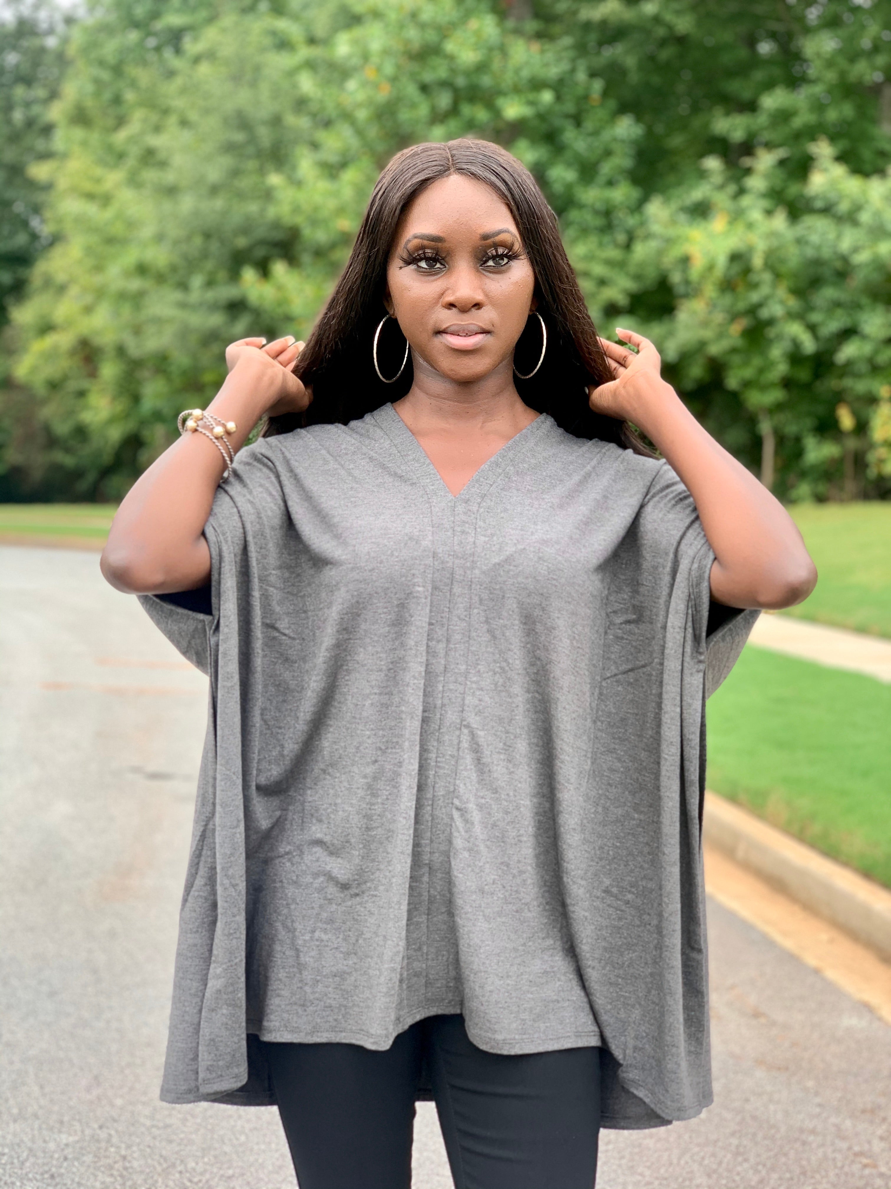 This is an Oversized V-Neck Poncho. Super cute and comfy to just throw on and go about your day. It flows with the wind and give an edgy look for the day vice wearing any regular top.