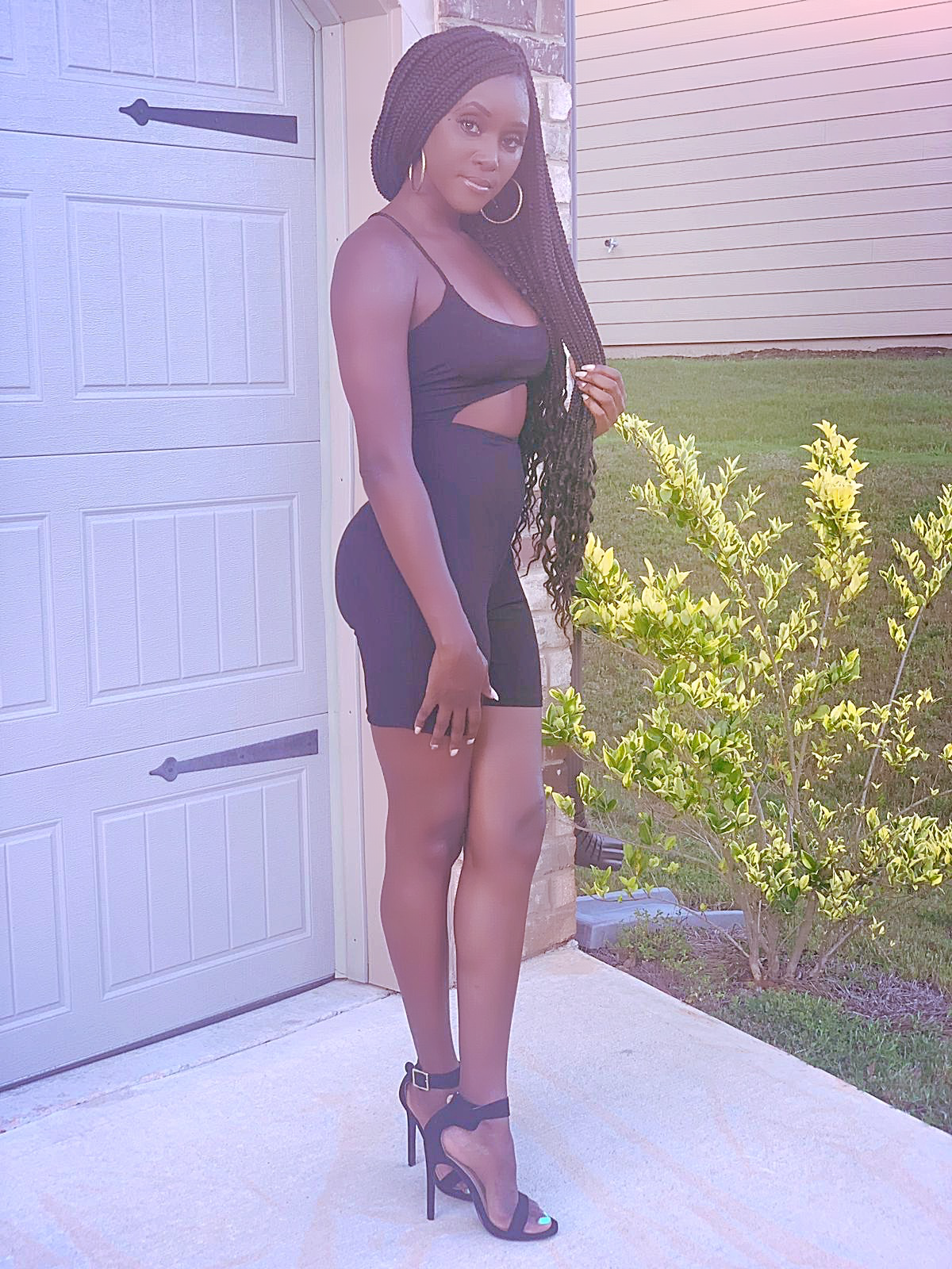 This knit romper features, a stretchy fabric, round neckline, cut out mid section, self tie back strap closures.