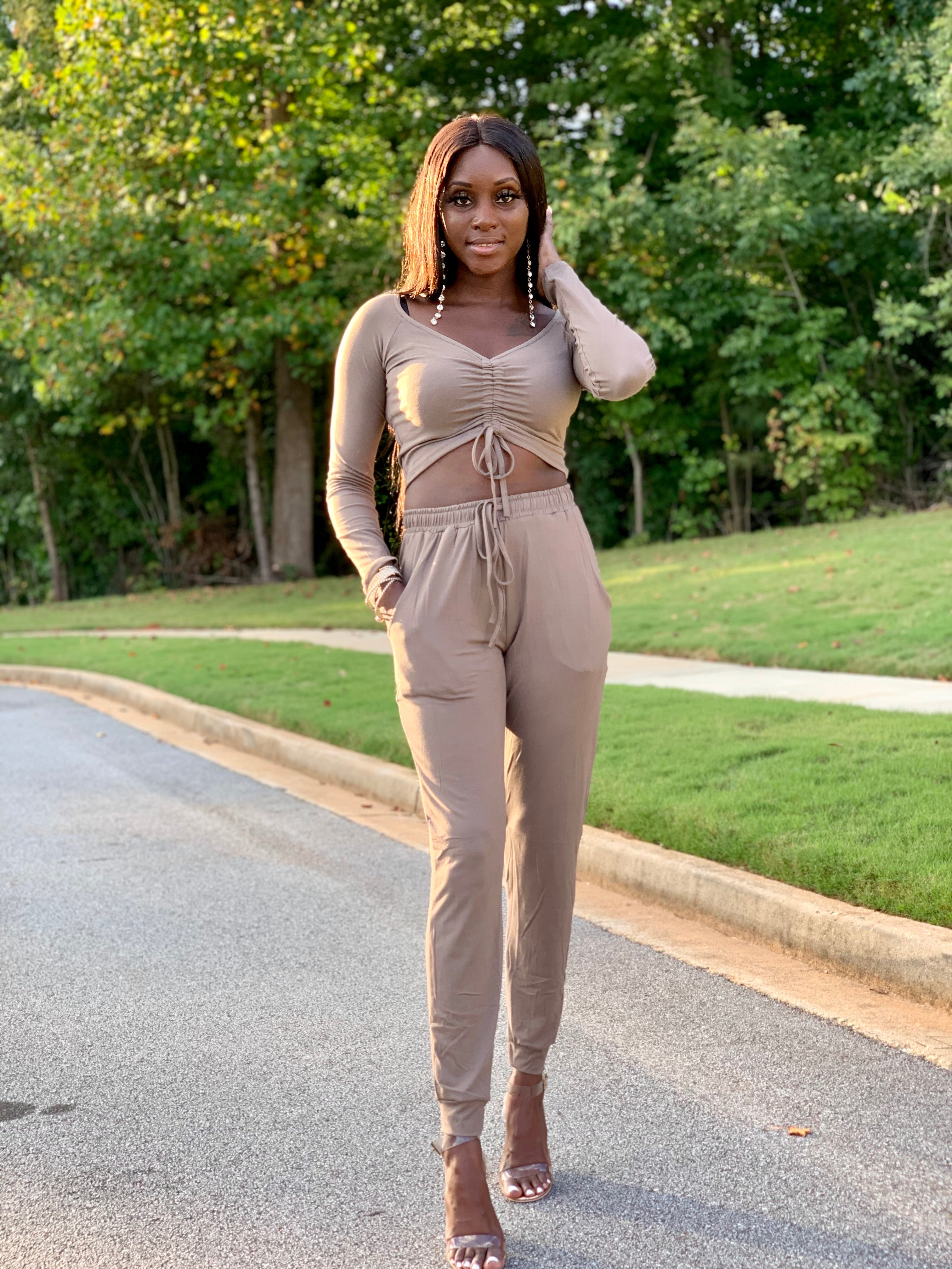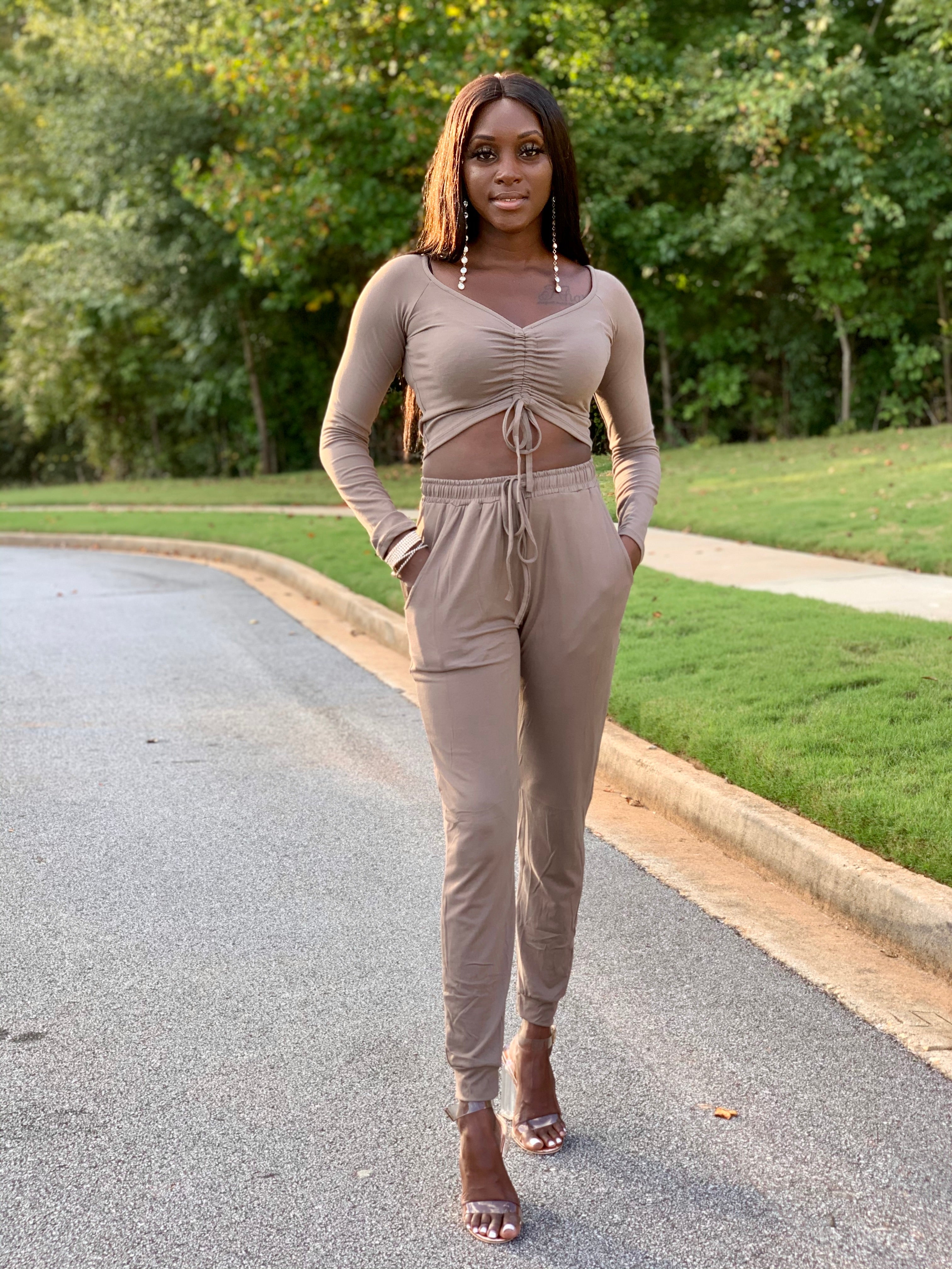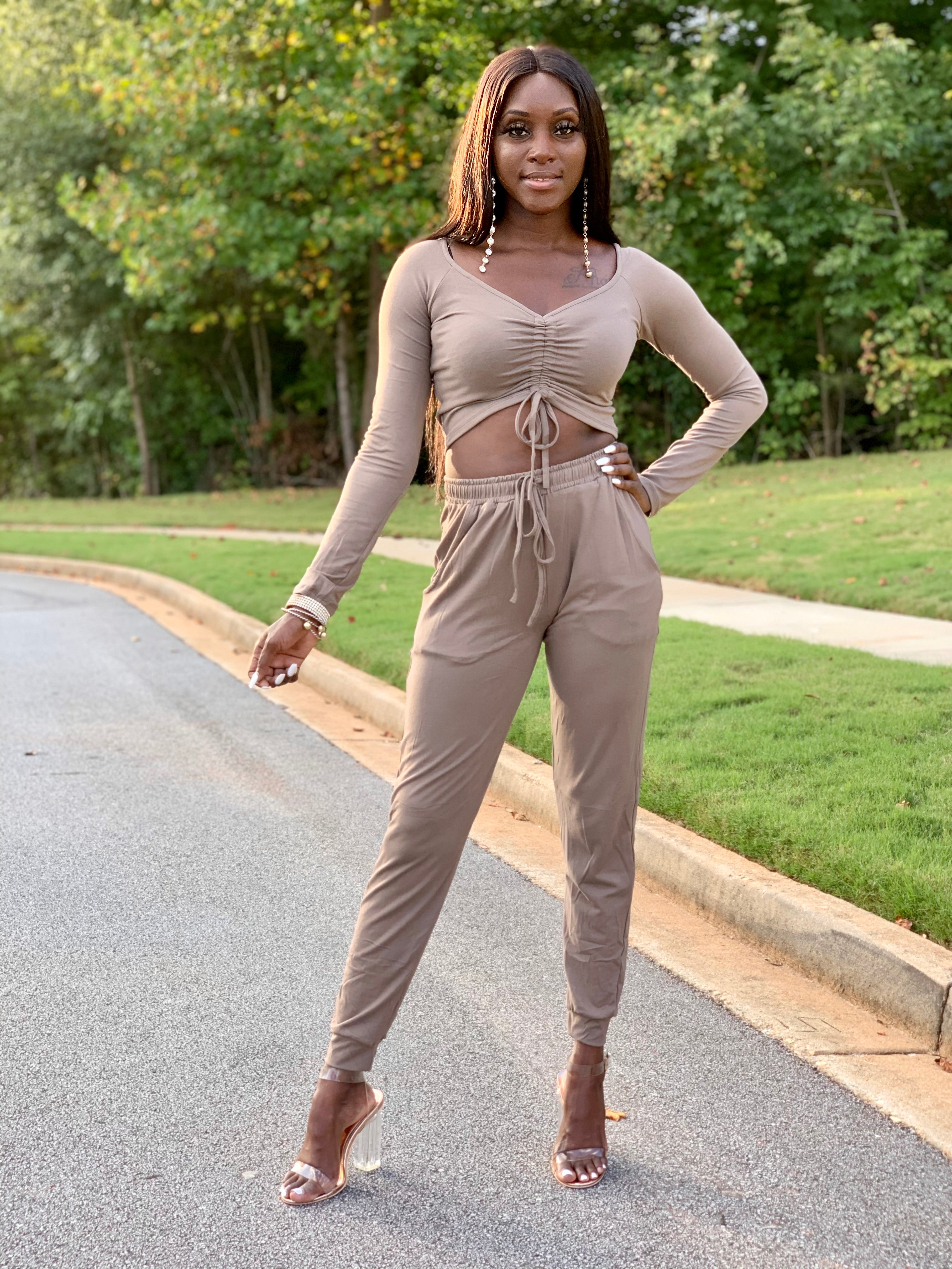 Cali Ruched Top & Jogger set | Taupe - FINAL SALE