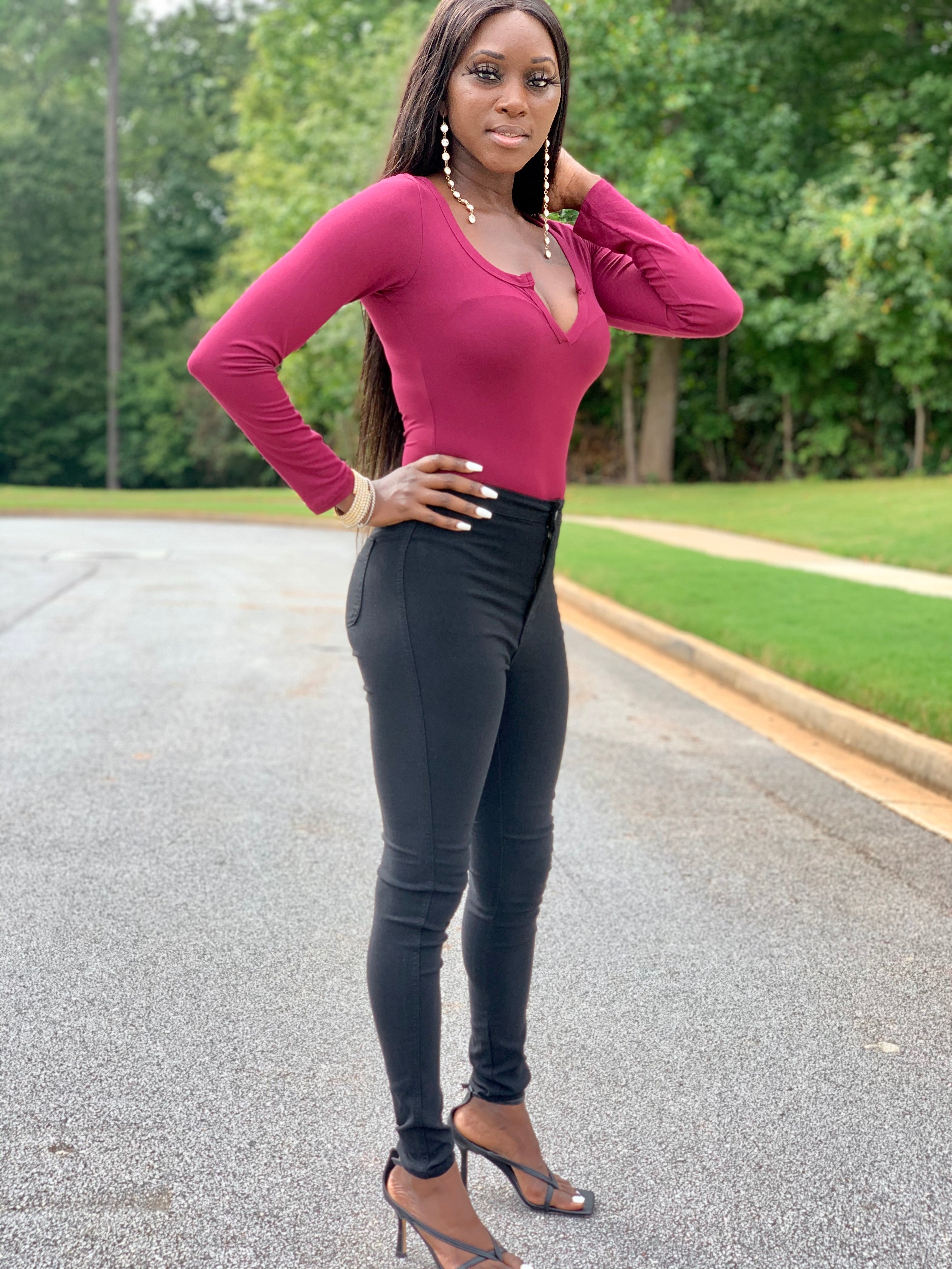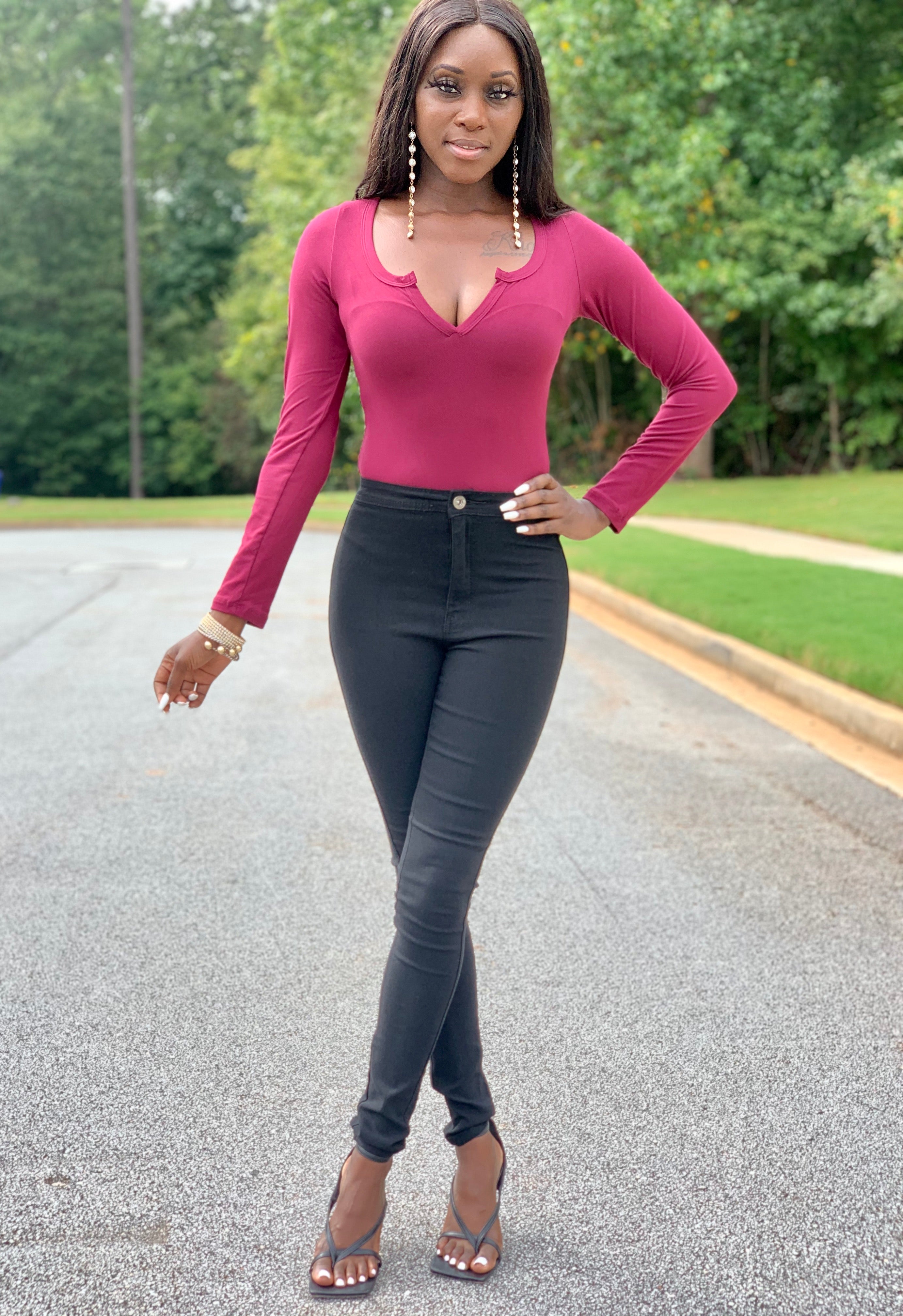 This Bodysuit is a fall must have! It is buttery soft and very comfortable. Easy to glam this bodysuit with a nice pair of jeans. It features a V-Neckline. This Bodysuit comes in 4 colors.