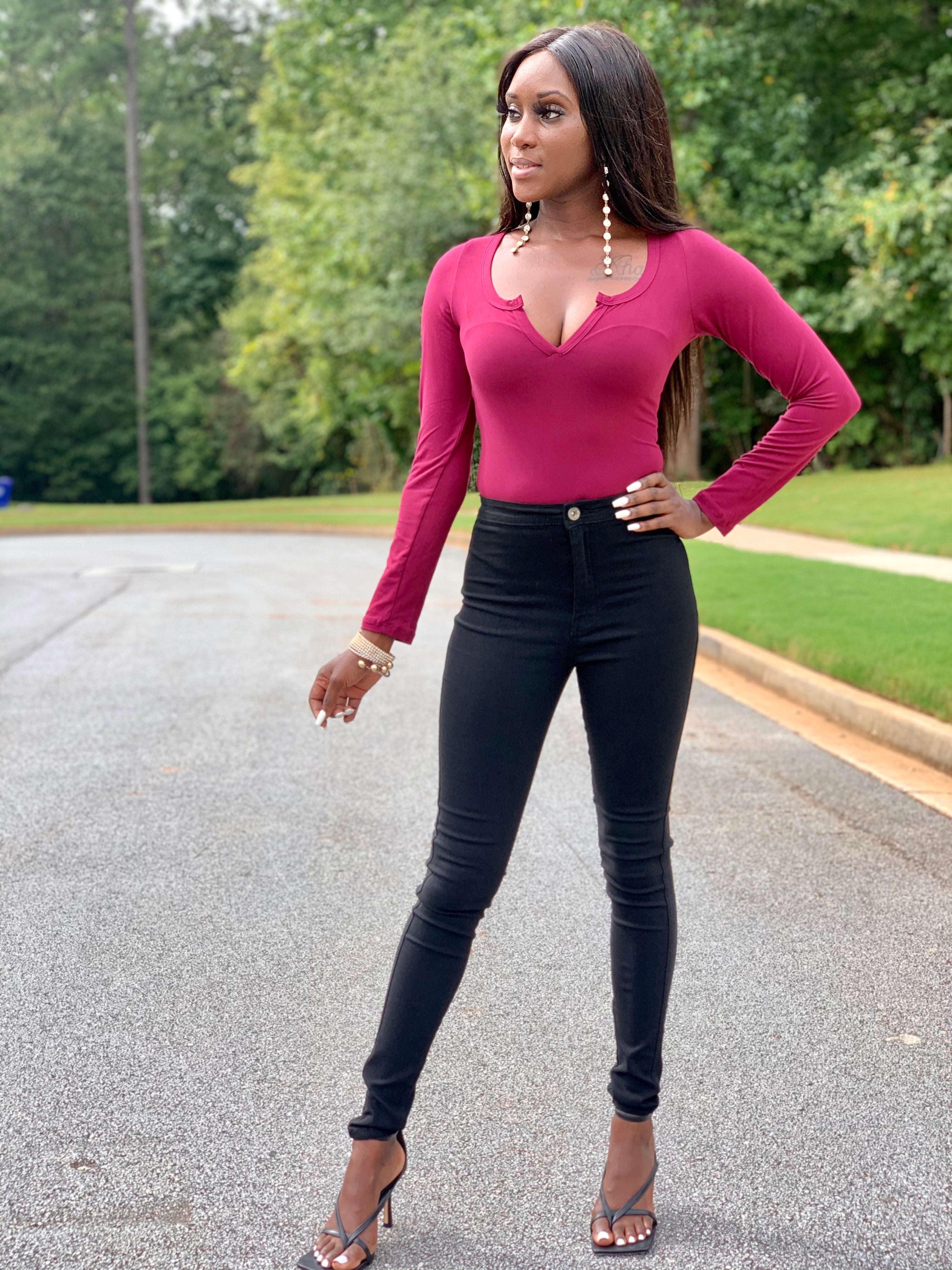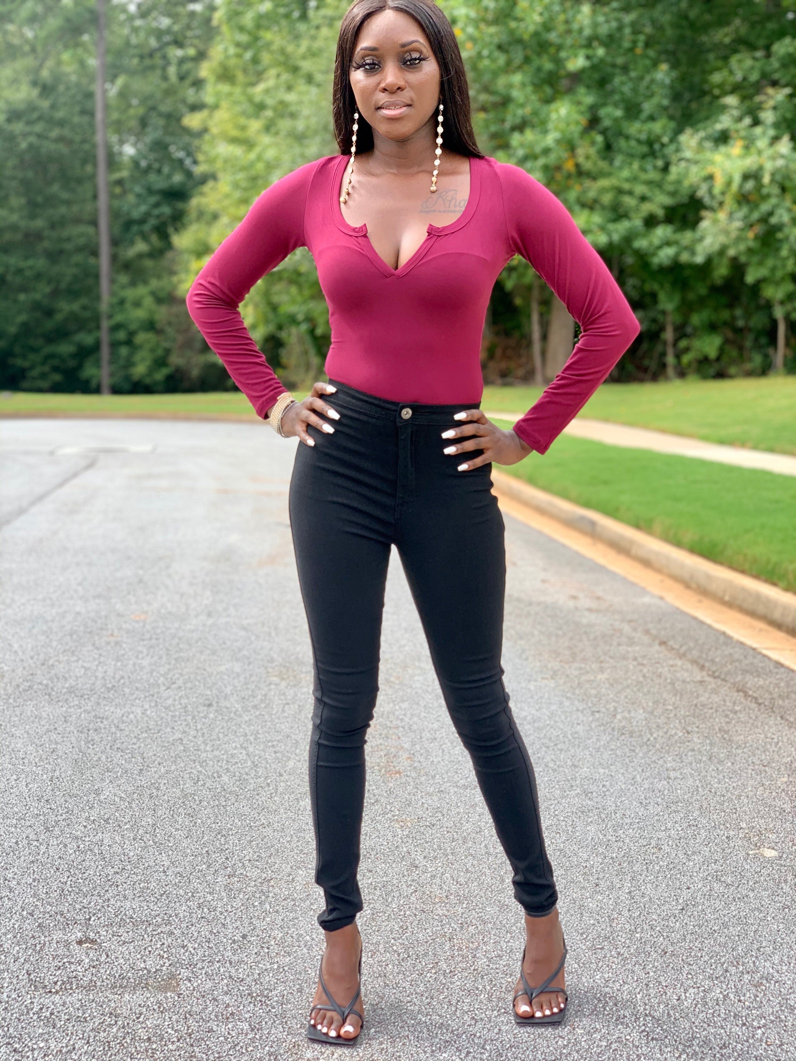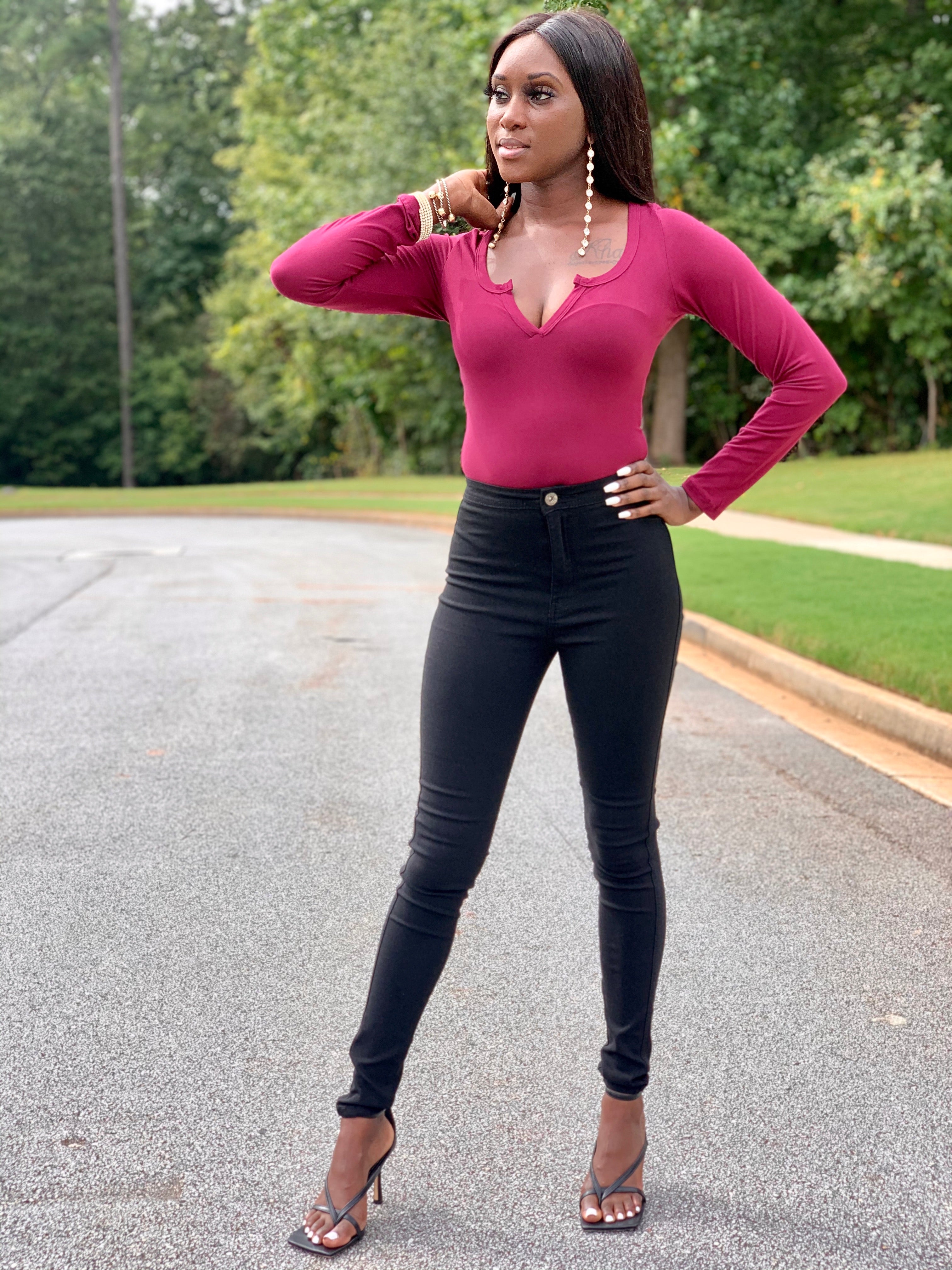 How to wear: You can wear as is with a black pair of heels pair with statement earrings. These bodysuits also pair very well with our Omega Stretch Jeans.