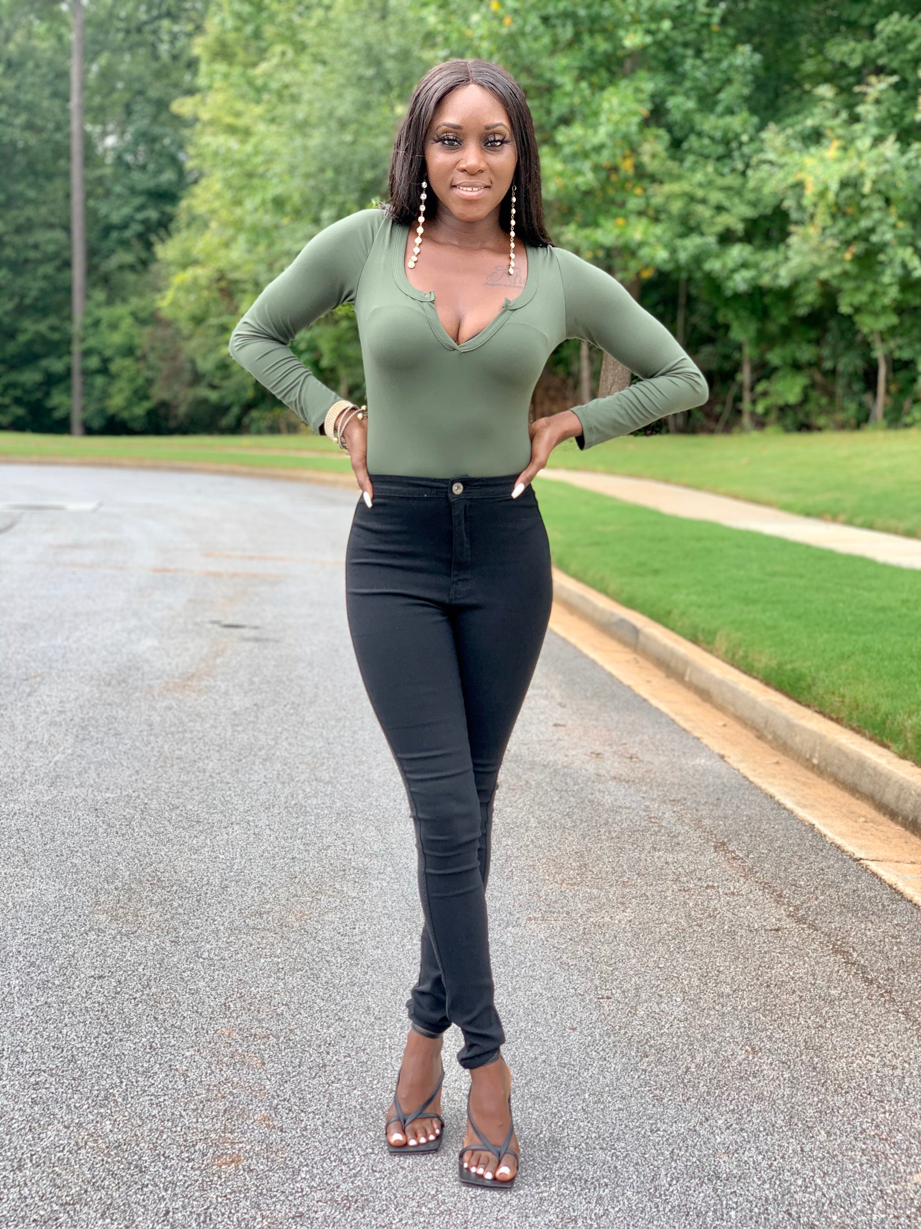 This Bodysuit is a fall must have! It is buttery soft and very comfortable. Easy to glam this bodysuit with a nice pair of jeans. It features a V-Neckline. This Bodysuit comes in 4 colors.