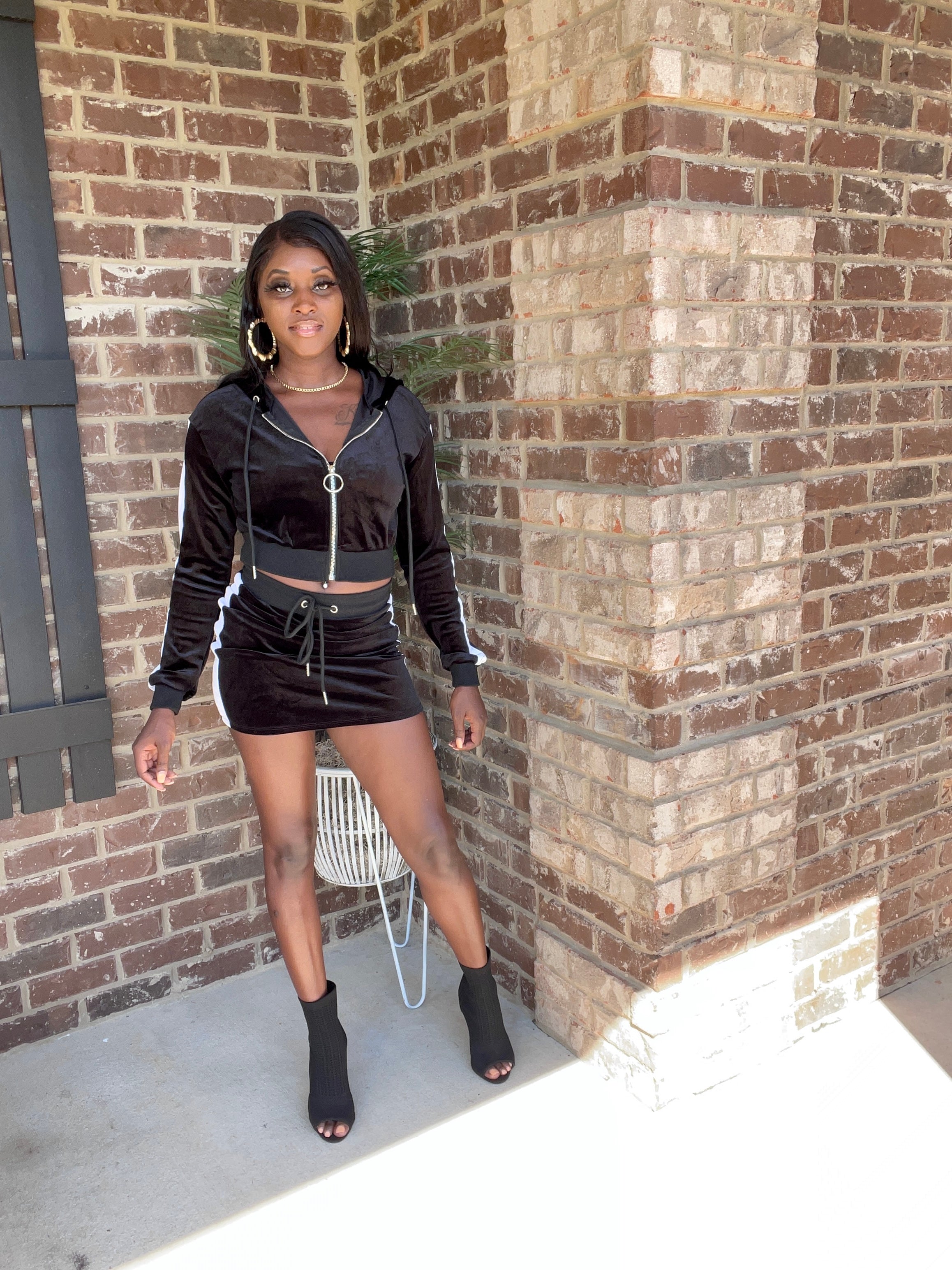 The Lush Velour Skirt Set is a fashionable addition to your wardrobe. The velour material is soft and lightweight, providing comfort and ease of wear. This versatile skirt set is perfect for any occasion, and is sure to make you stand out.