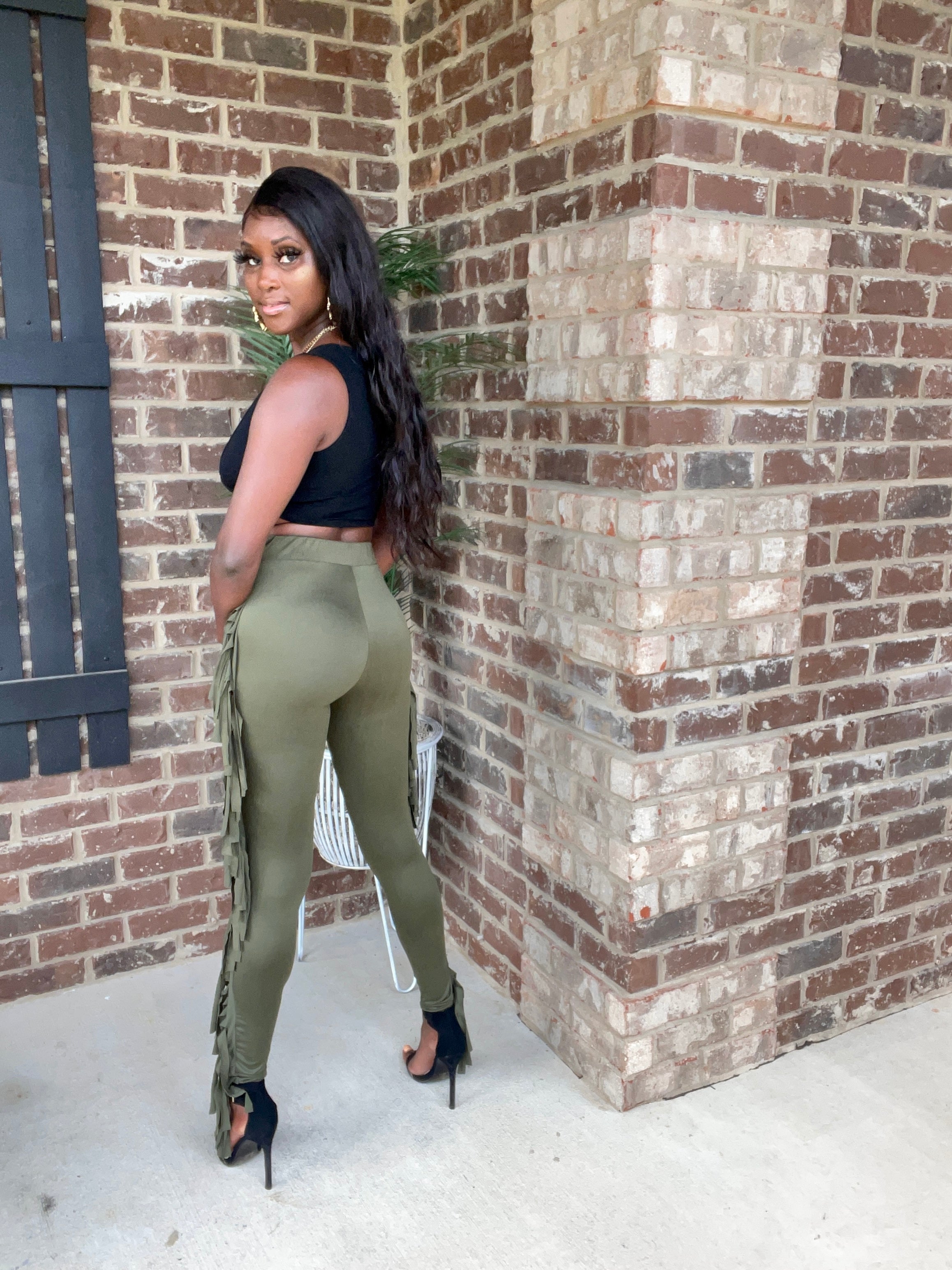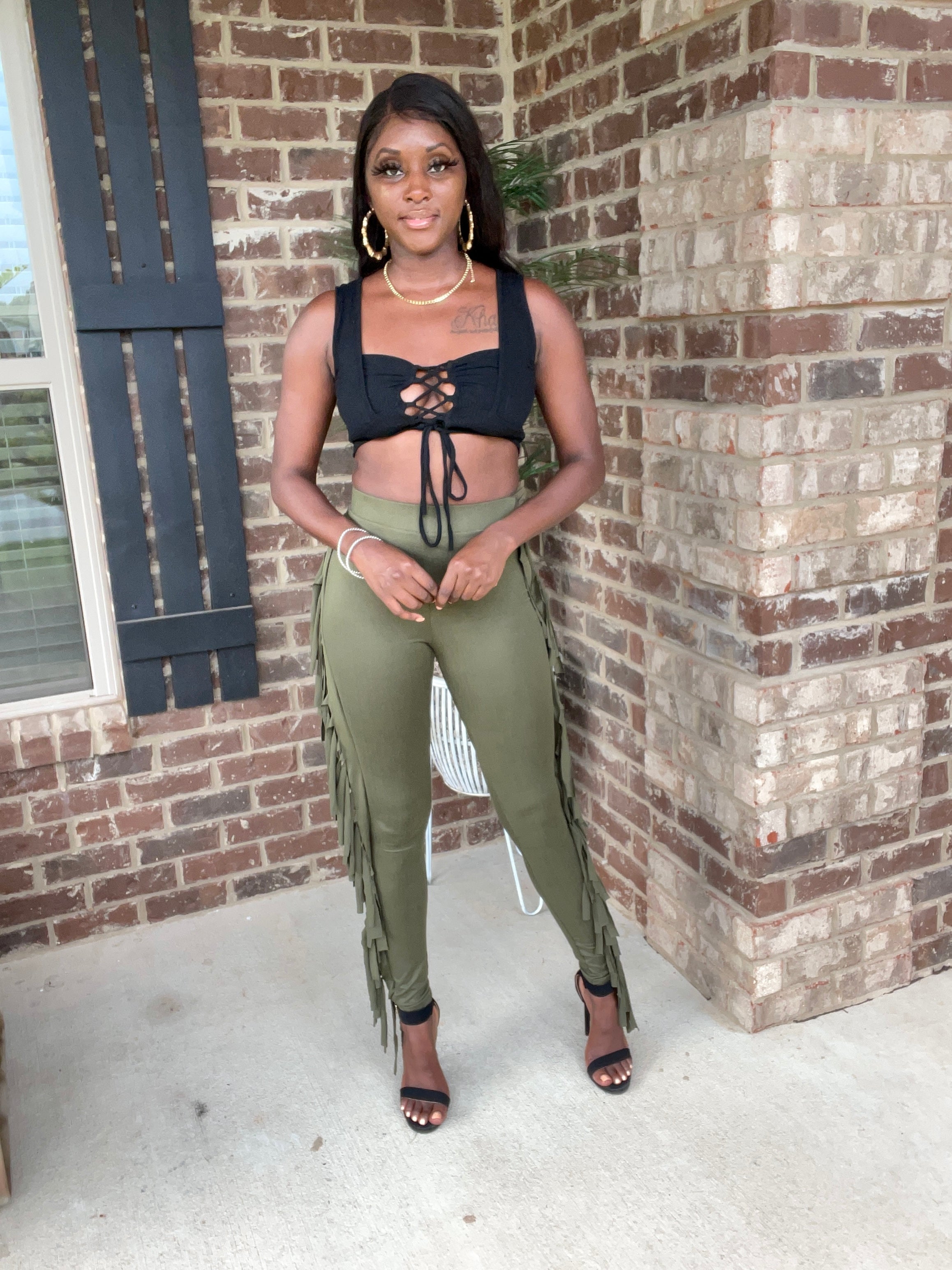 This is a super cute and comfy pair of leggings. It features a high waist, elastic waist and fringed sides. Comes in 3 colors.