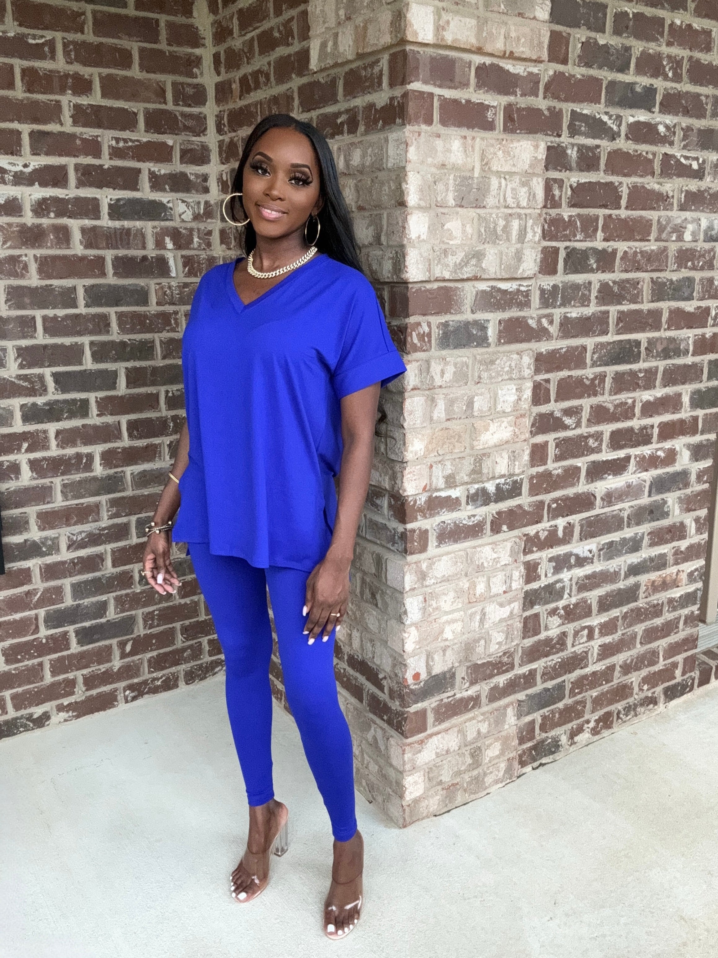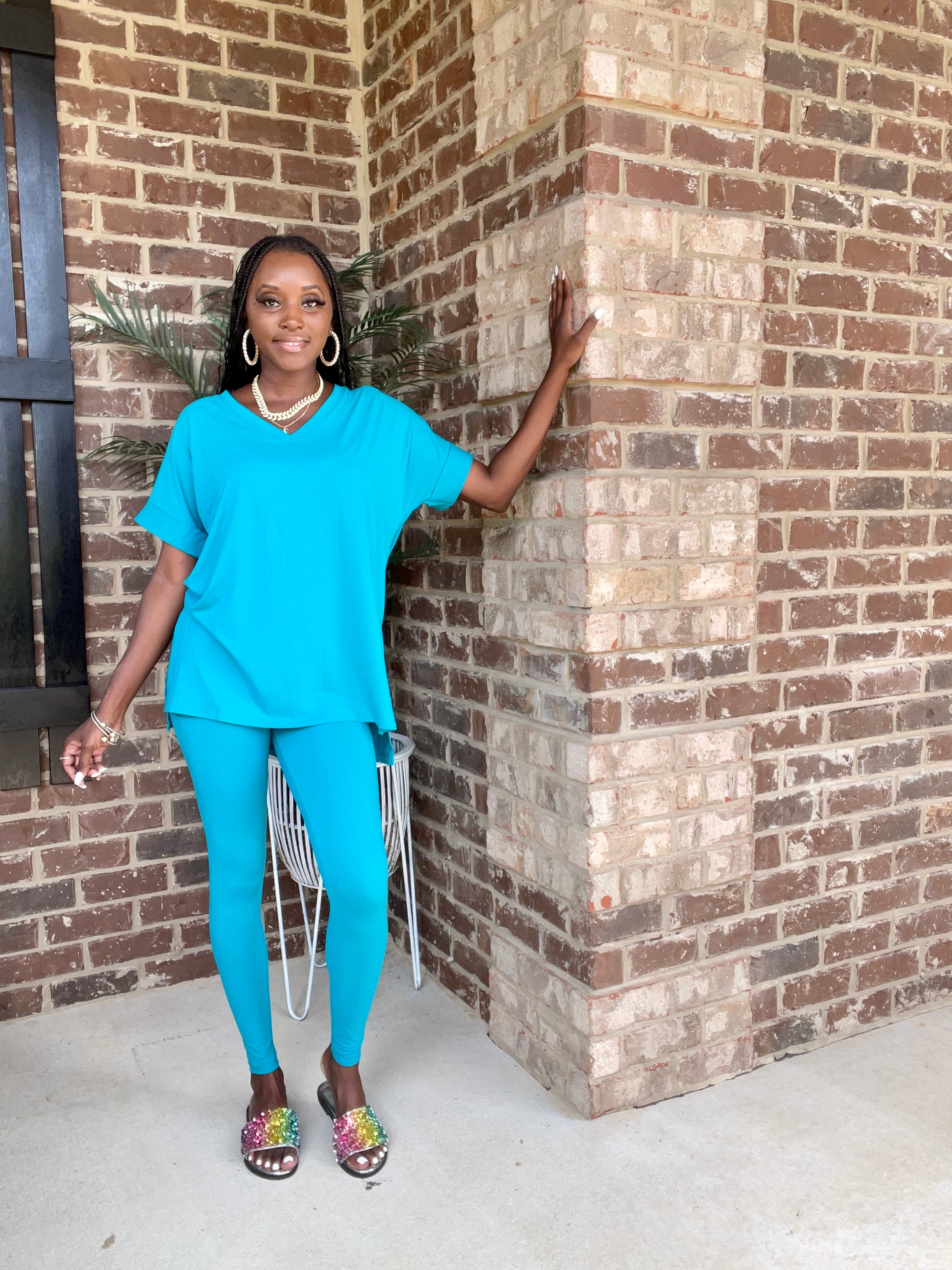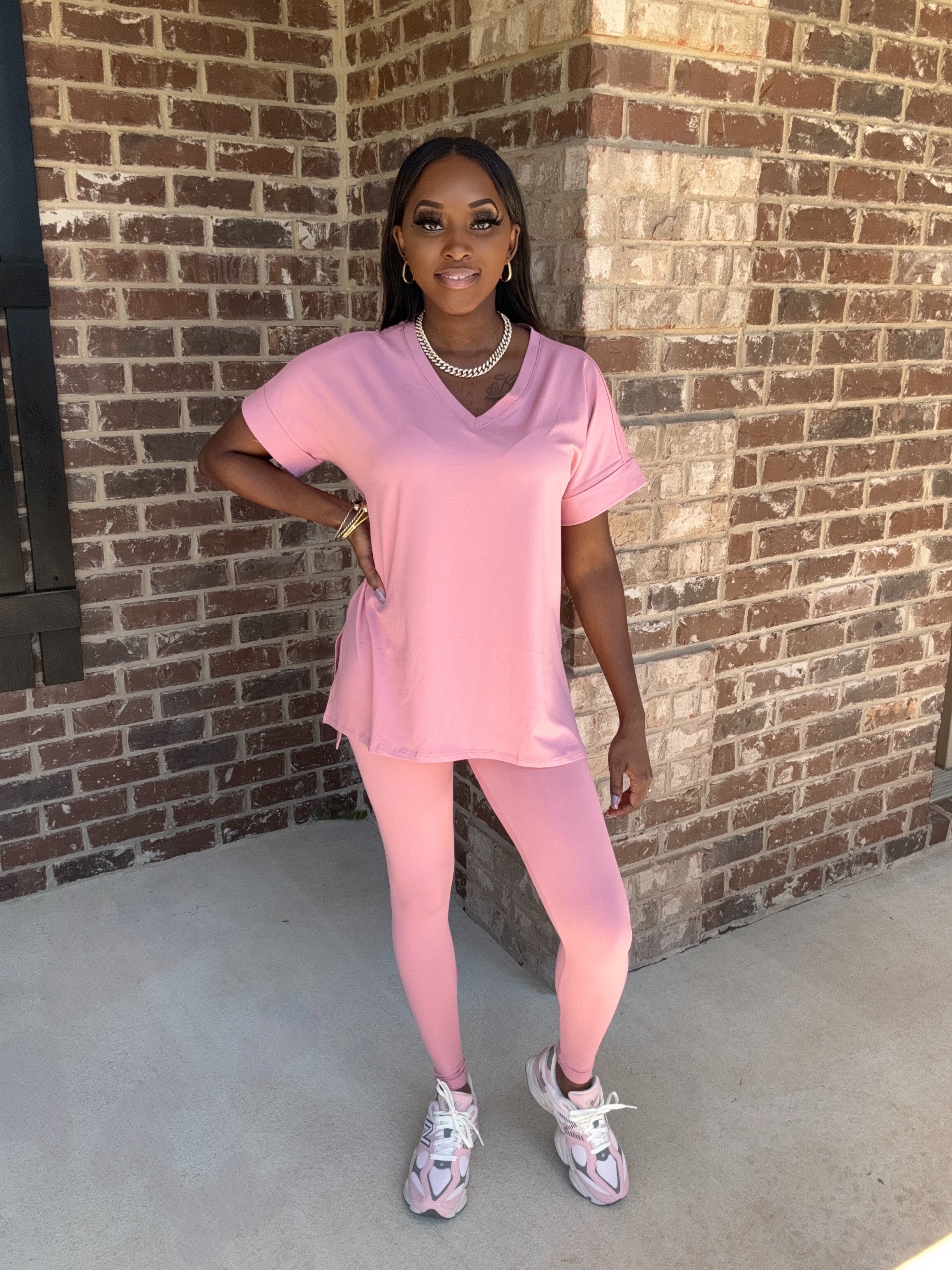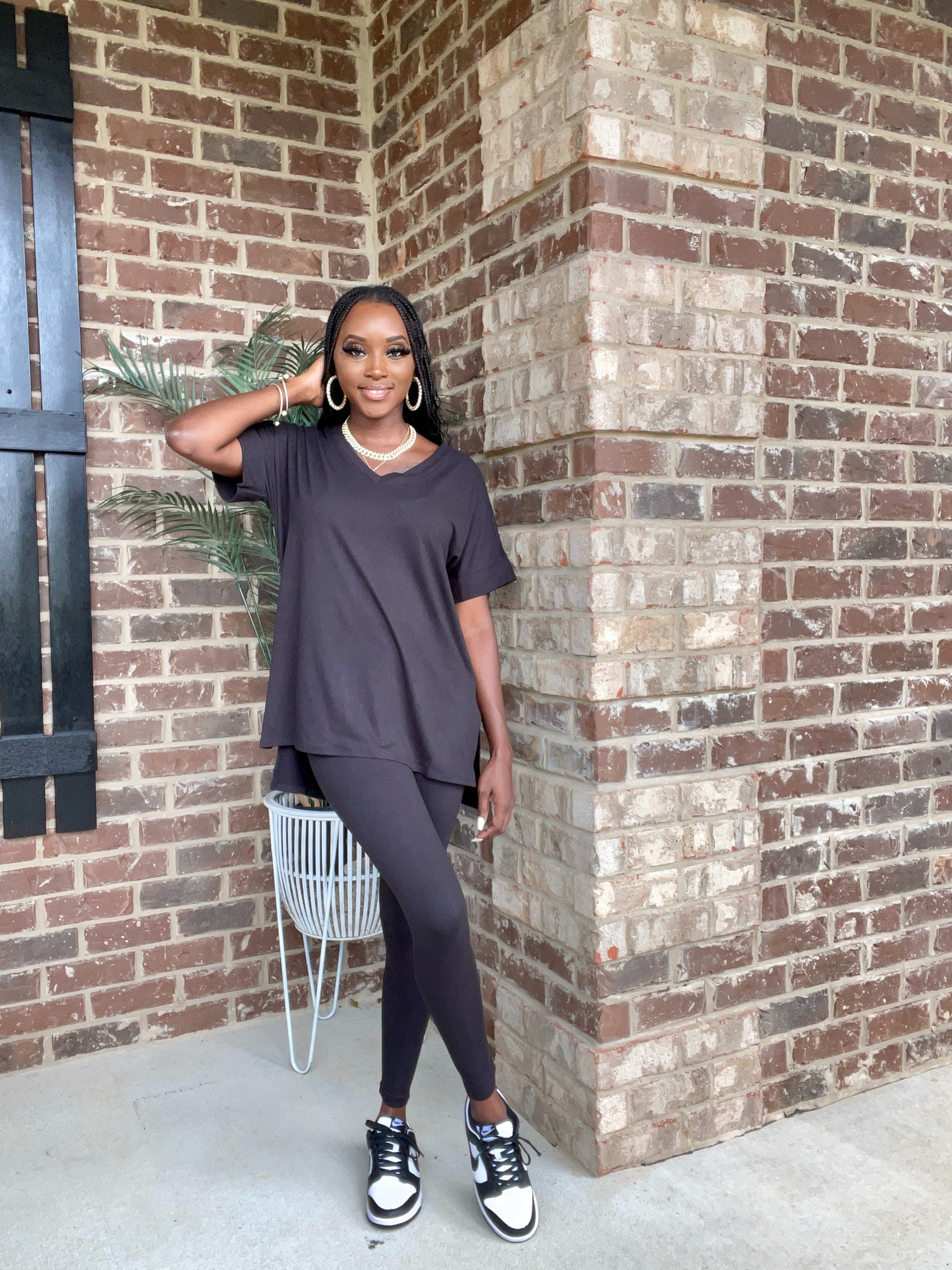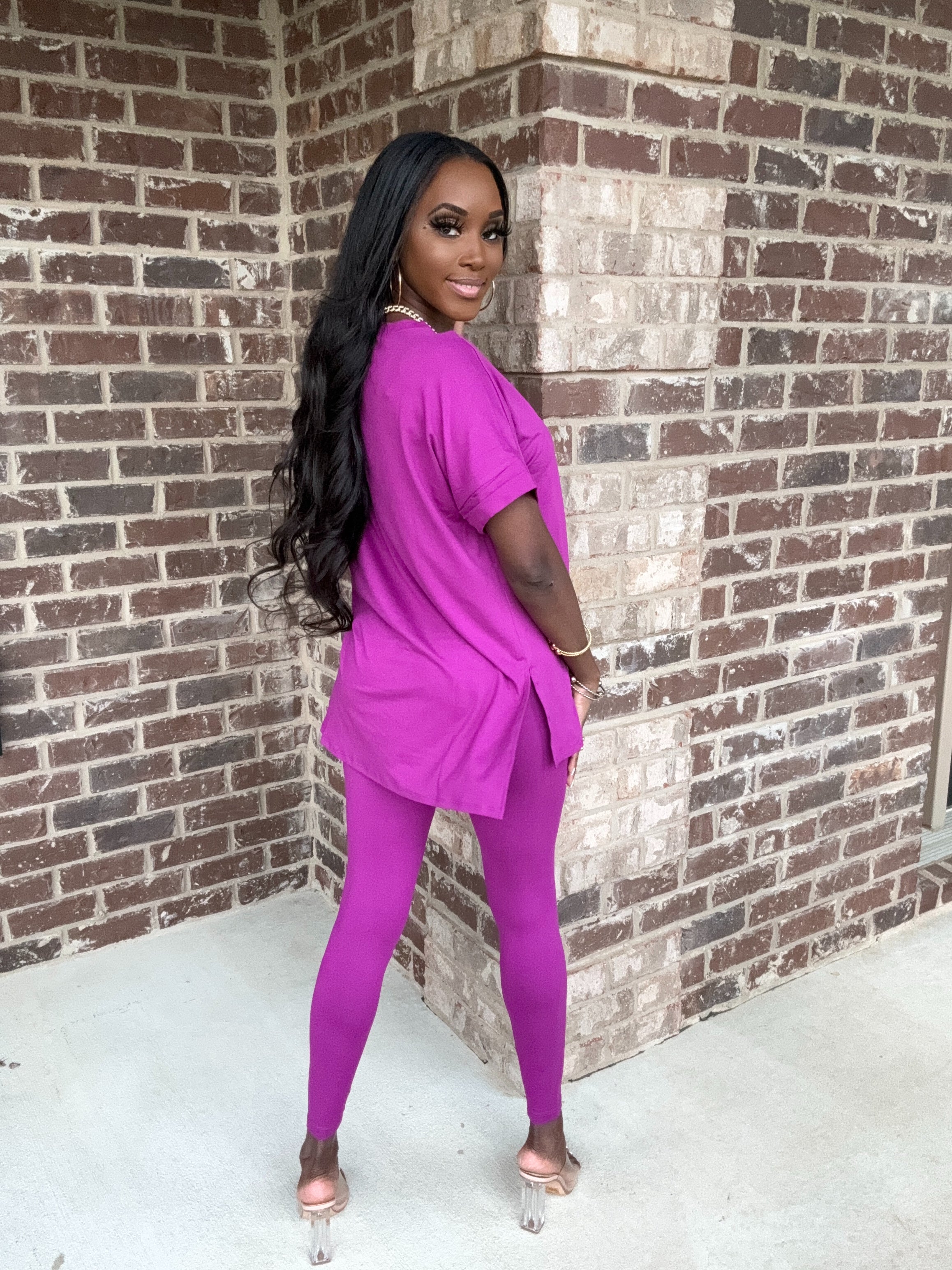 Our Butter Soft Legging Sets offer ultra-stretchy, buttery-soft fabric and perfect recovery for all-day comfort. Featuring an oversized top with a V-Neck and Hi-Low hem, as well as elastic waistband bottoms, this two-piece set is a must-have closet staple that will take you from lounging to lunch with ease.