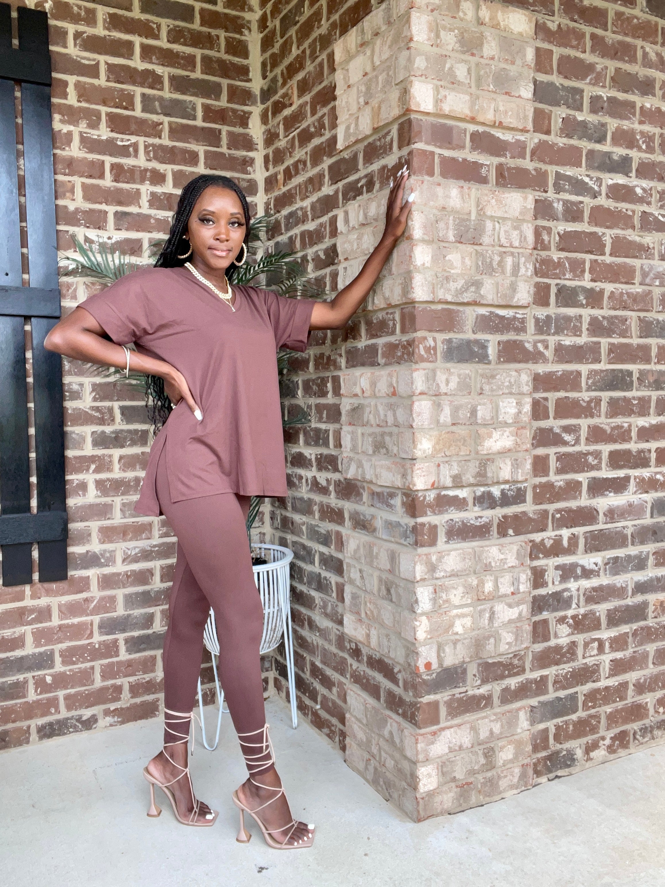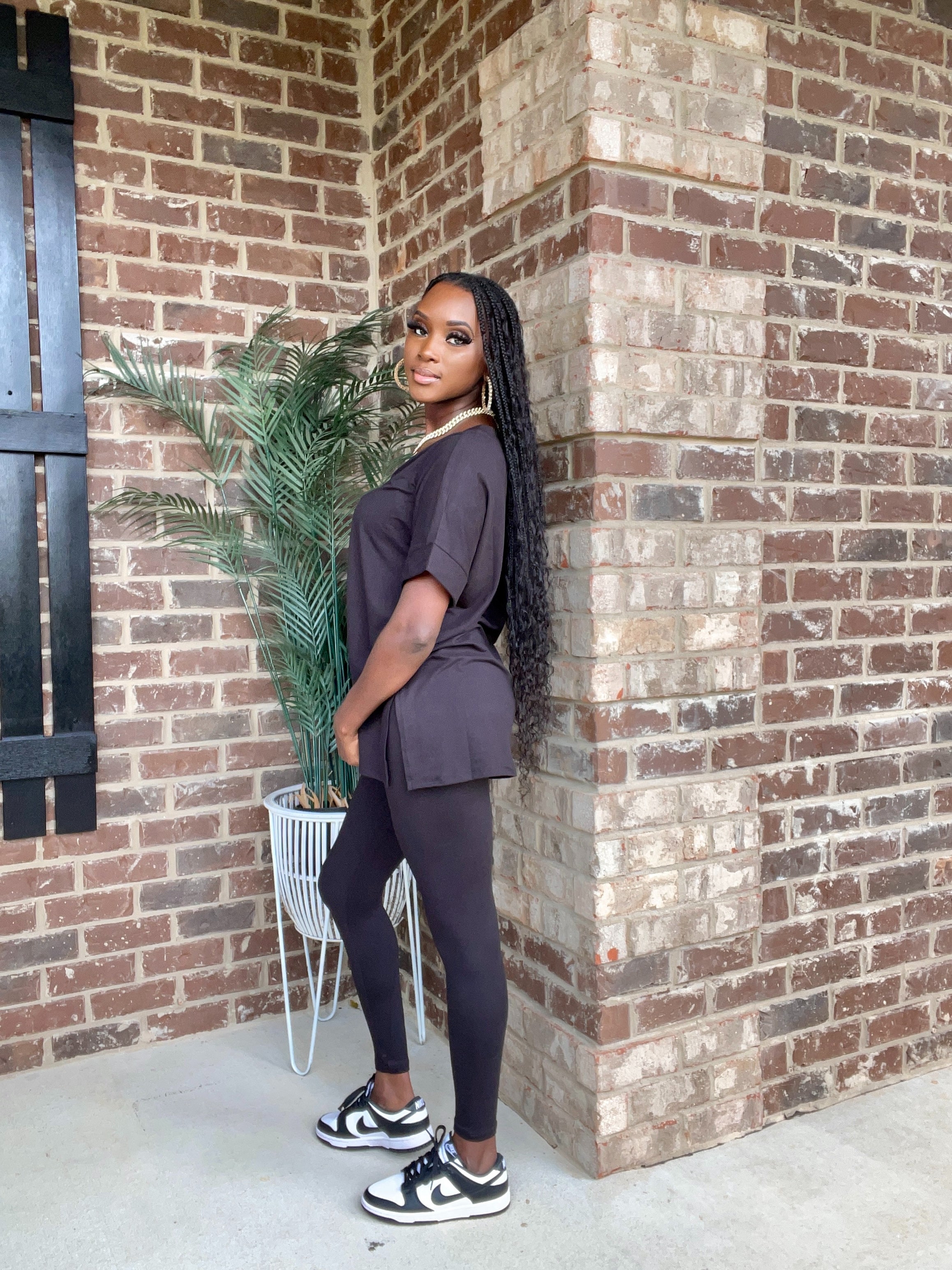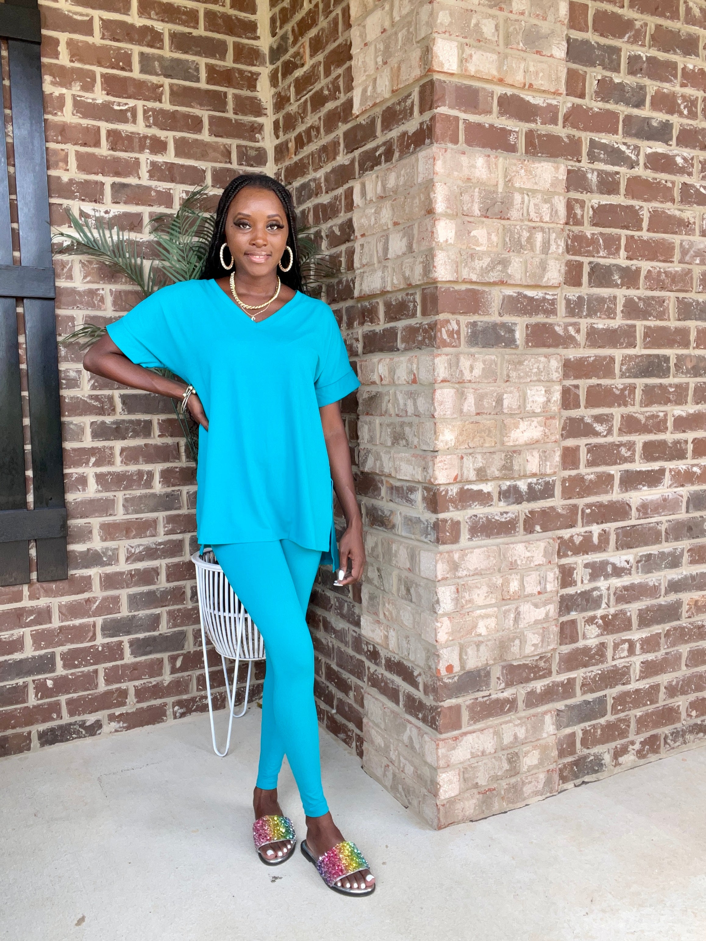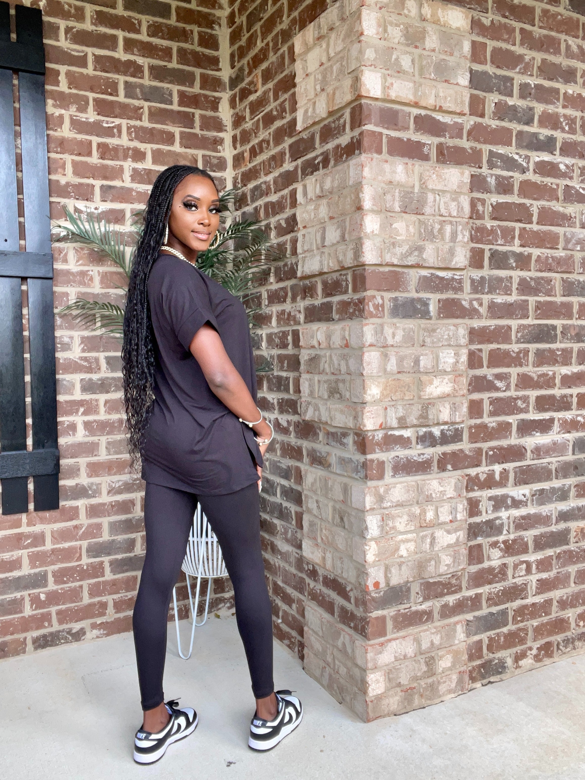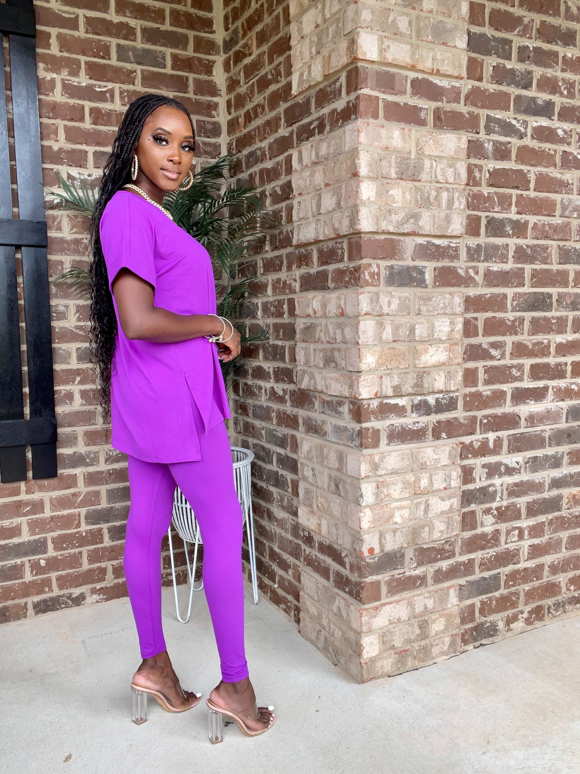 Our Butter Soft Legging Sets offer ultra-stretchy, buttery-soft fabric and perfect recovery for all-day comfort. Featuring an oversized top with a V-Neck and Hi-Low hem, as well as elastic waistband bottoms, this two-piece set is a must-have closet staple that will take you from lounging to lunch with ease.