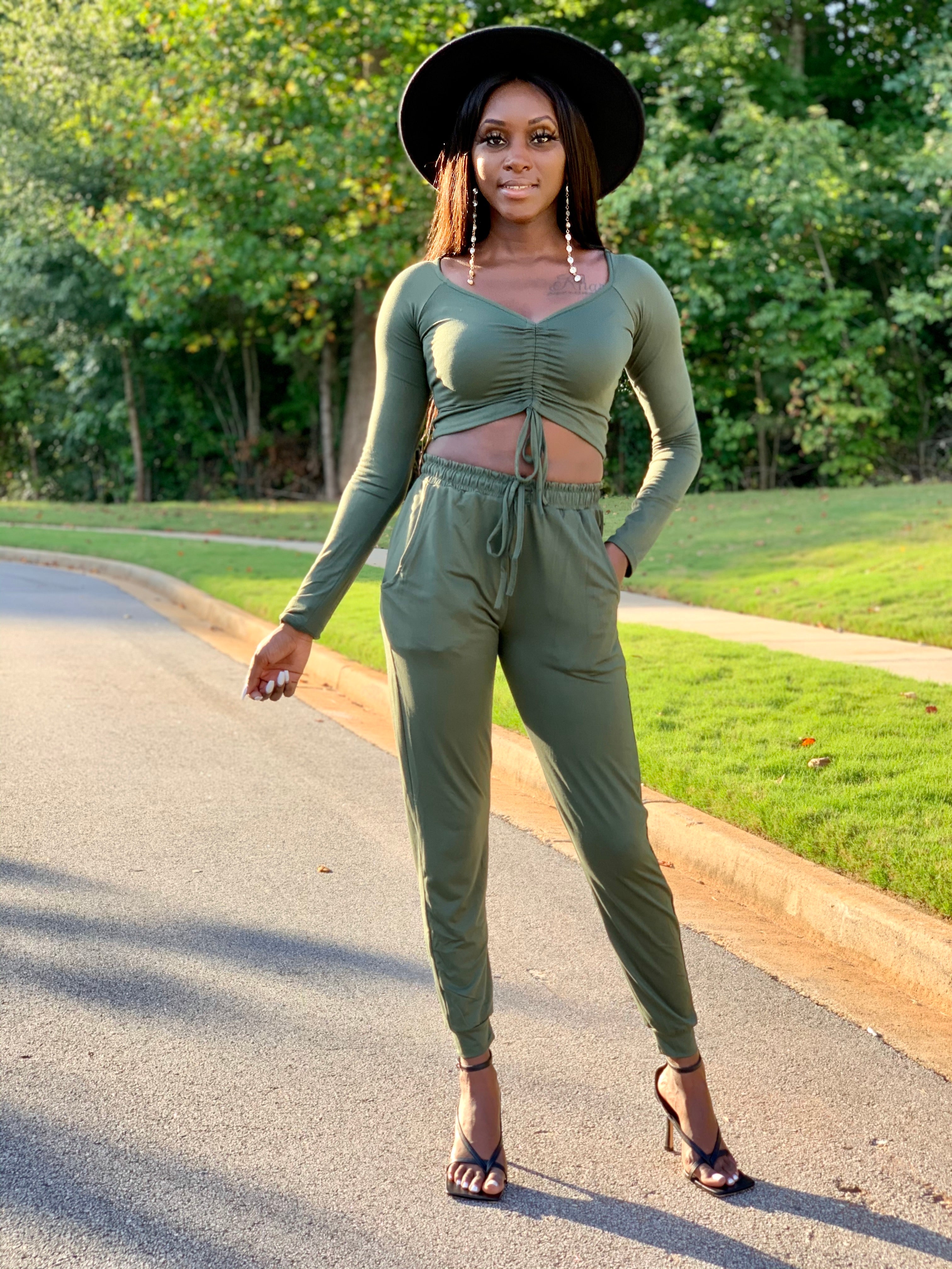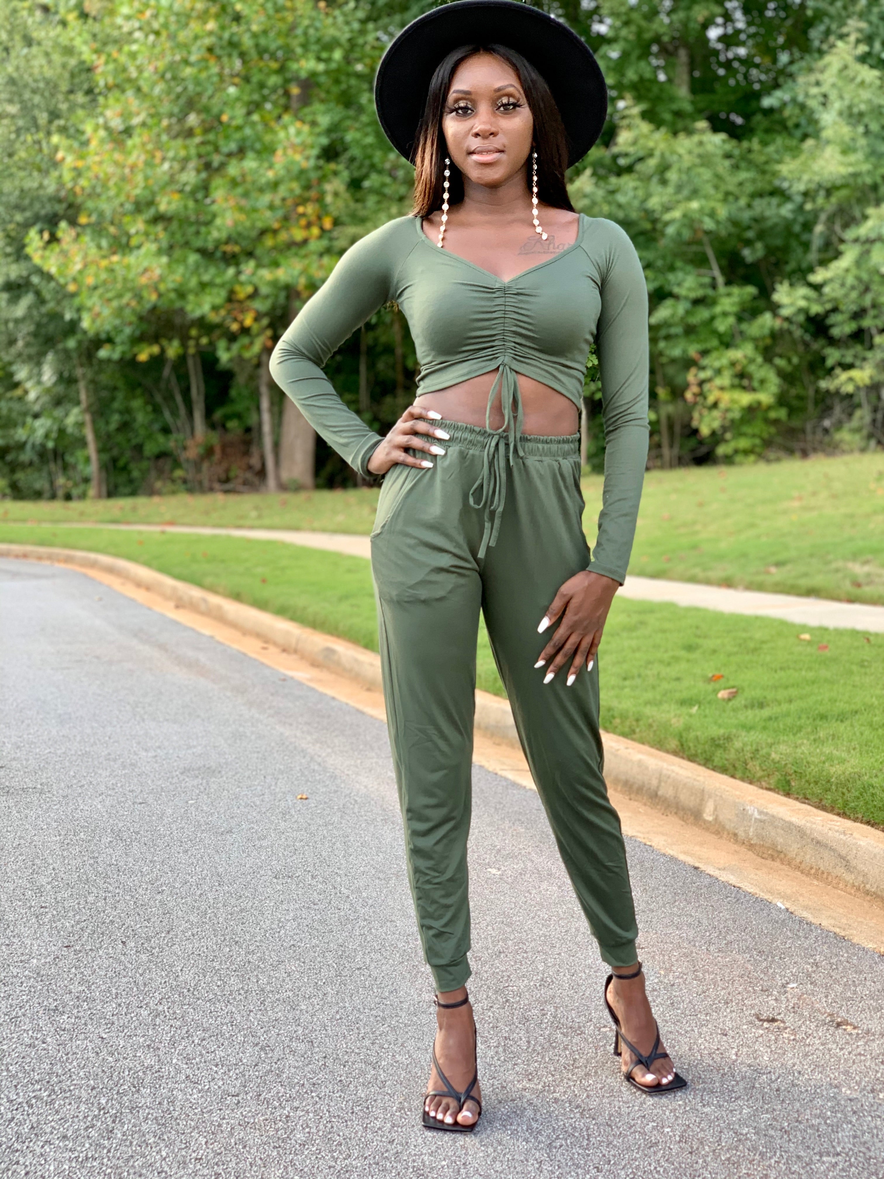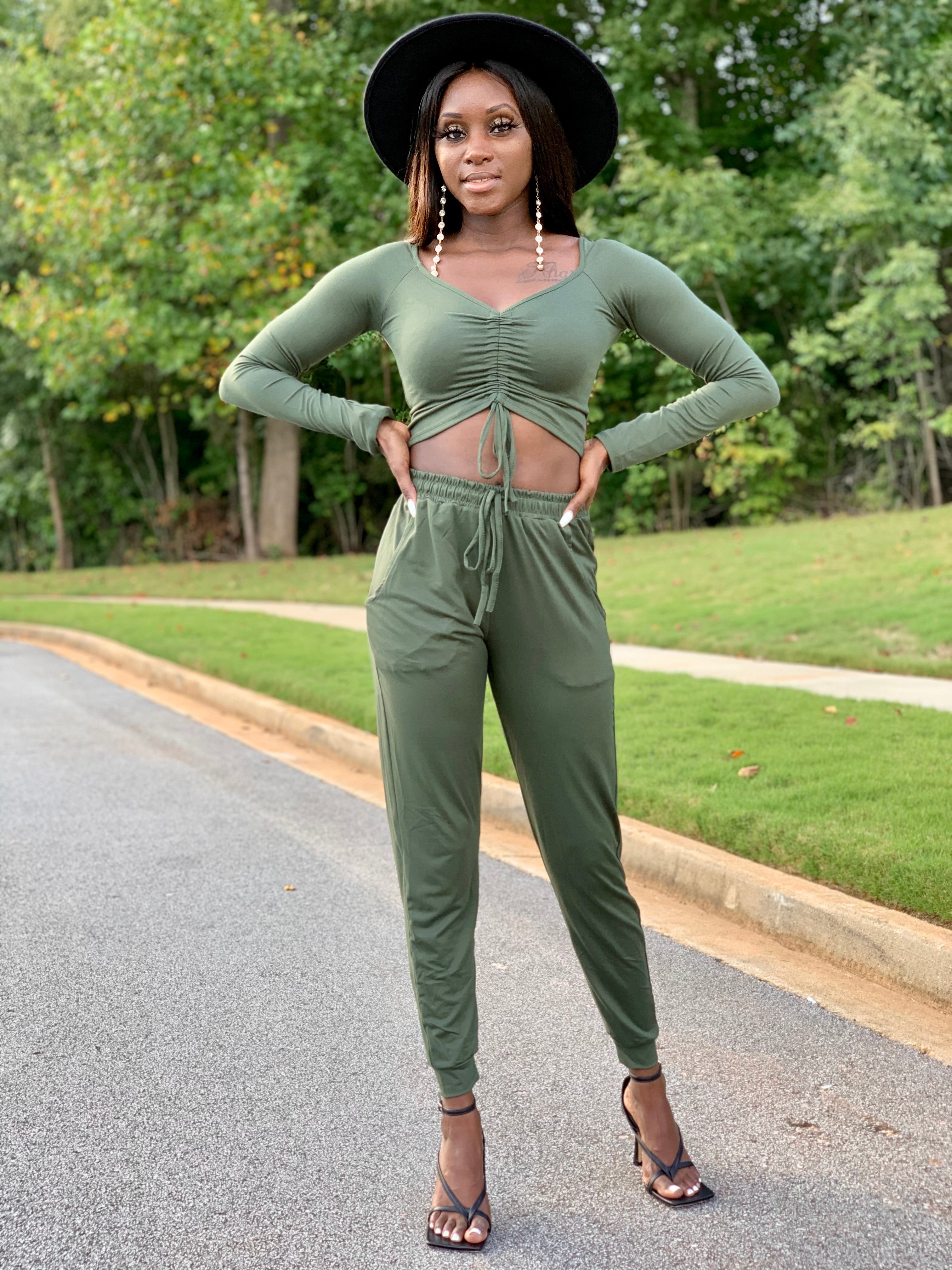 Cali Ruched Top & Jogger set | Olive - FINAL SALE