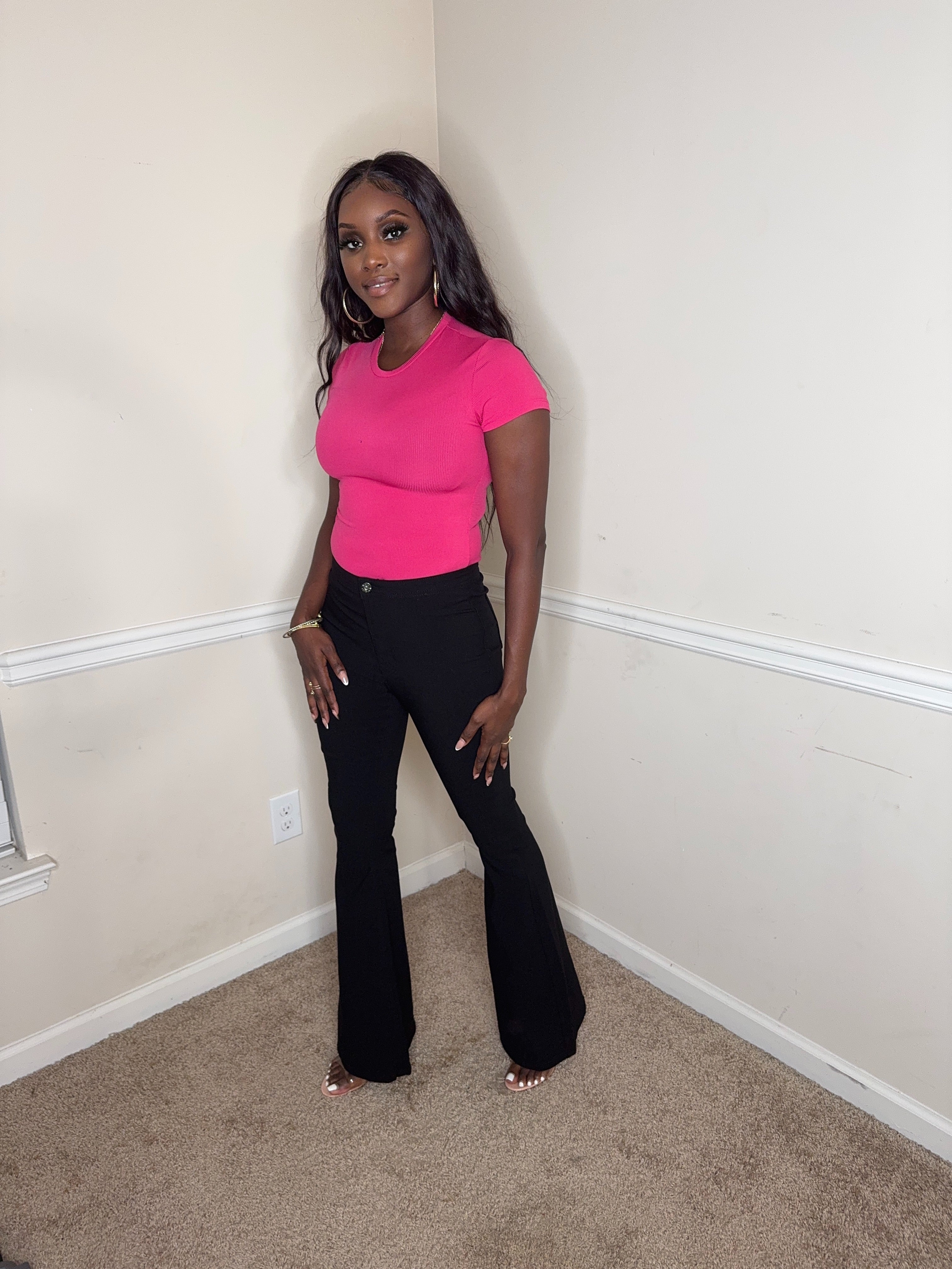Elevate your everyday style with our Basic Short Sleeve Ribbed Round Neck Top. Crafted from a soft, medium-weight stretch rib knit, this top offers a perfect blend of comfort and effortless style. Its flattering ribbed design and classic round neckline make it a versatile essential for any wardrobe. Whether you're heading to class, running errands, or enjoying a casual day out, this top is your go-to for easy, stylish looks. The fabric feels incredibly soft against the skin, ensuring all-day comfort no matter where you go. A must-have for laid-back, chic vibes!