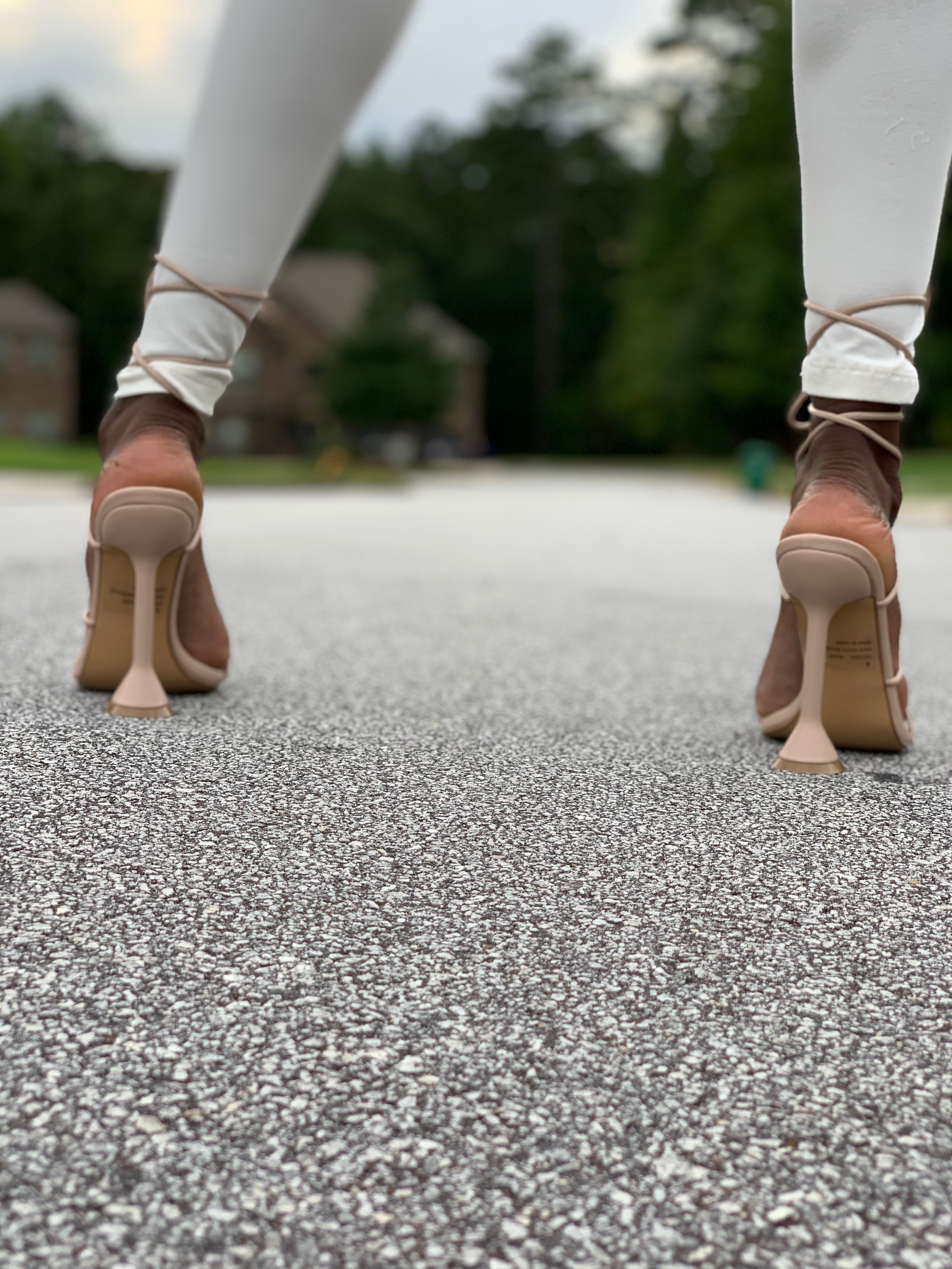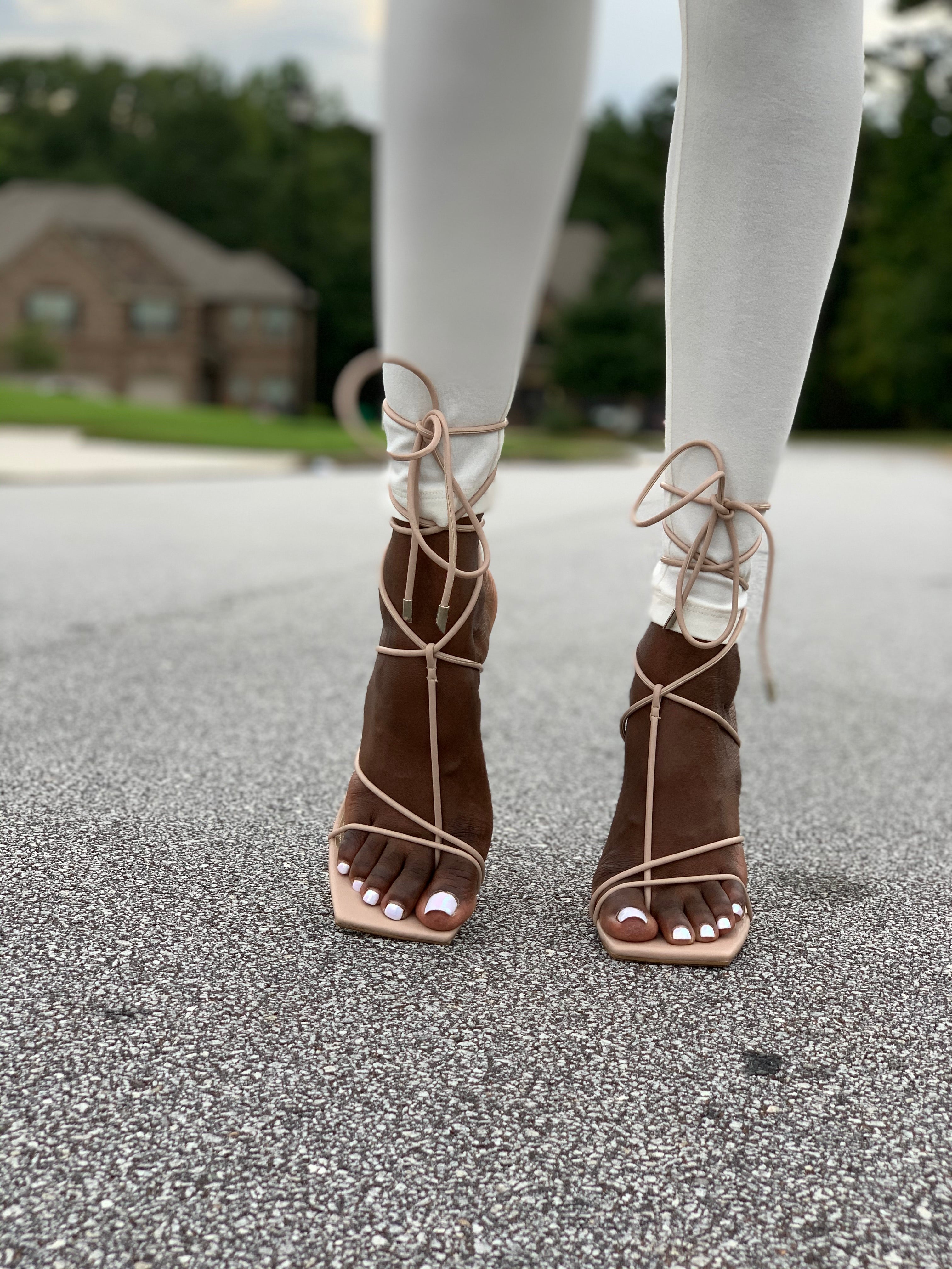 This a beautiful Strappy Heels are a must have in your shoe collection. It features strappy laces that wrap around your and can be tied to your desired look.