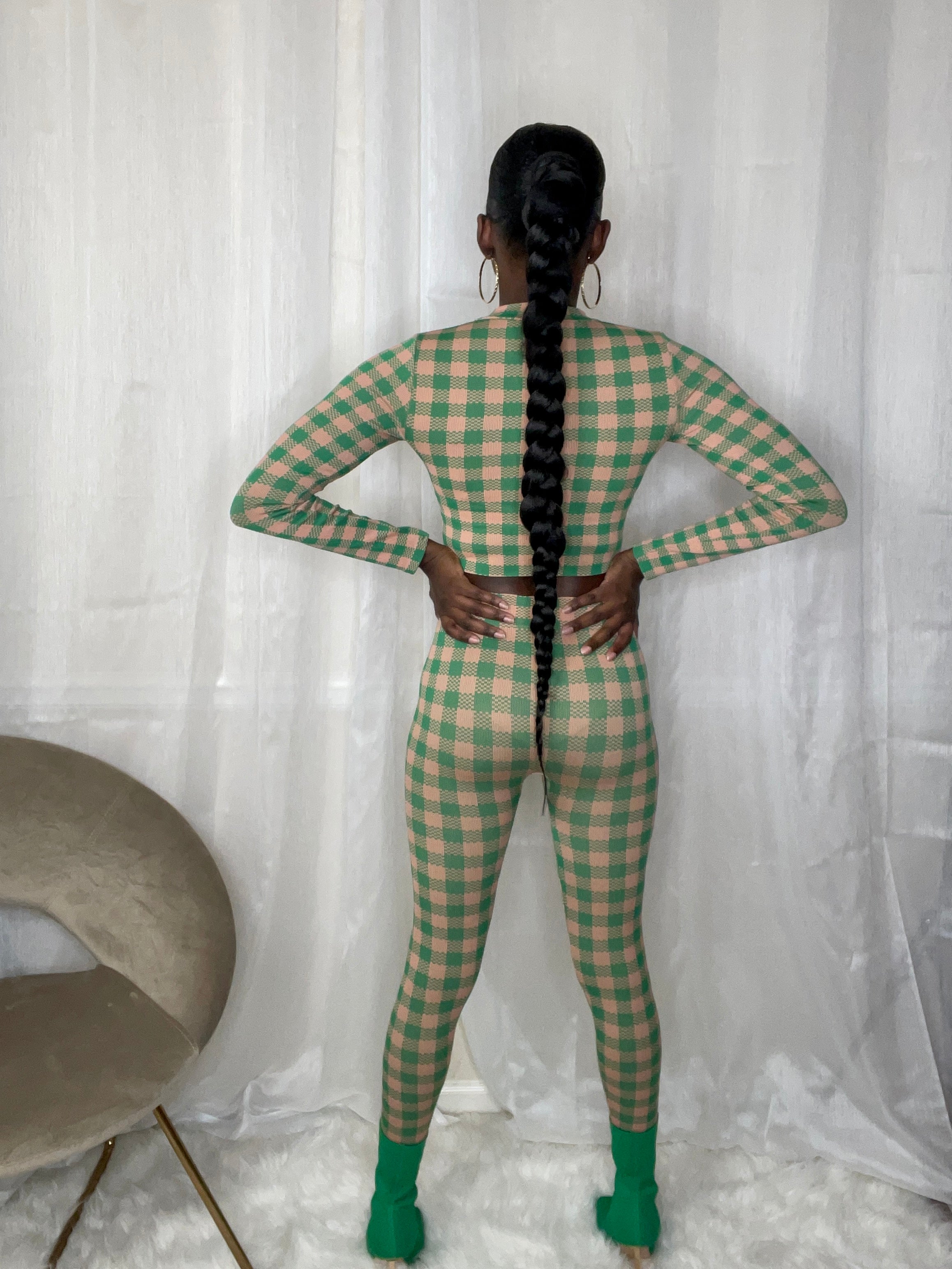 CHECKERED PATTERN LONG SLEEVE TOP & LEGGING SET