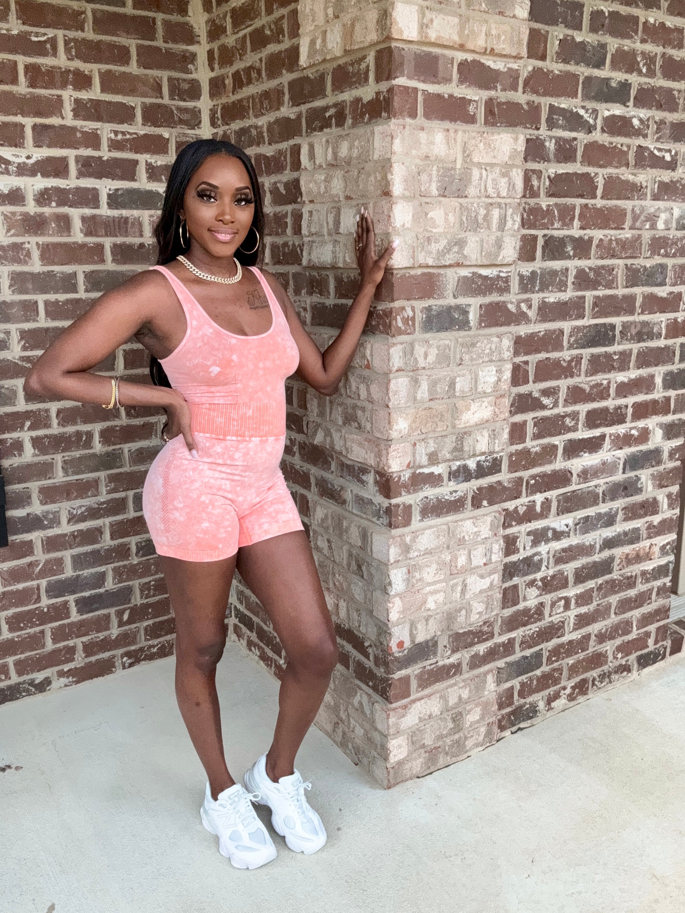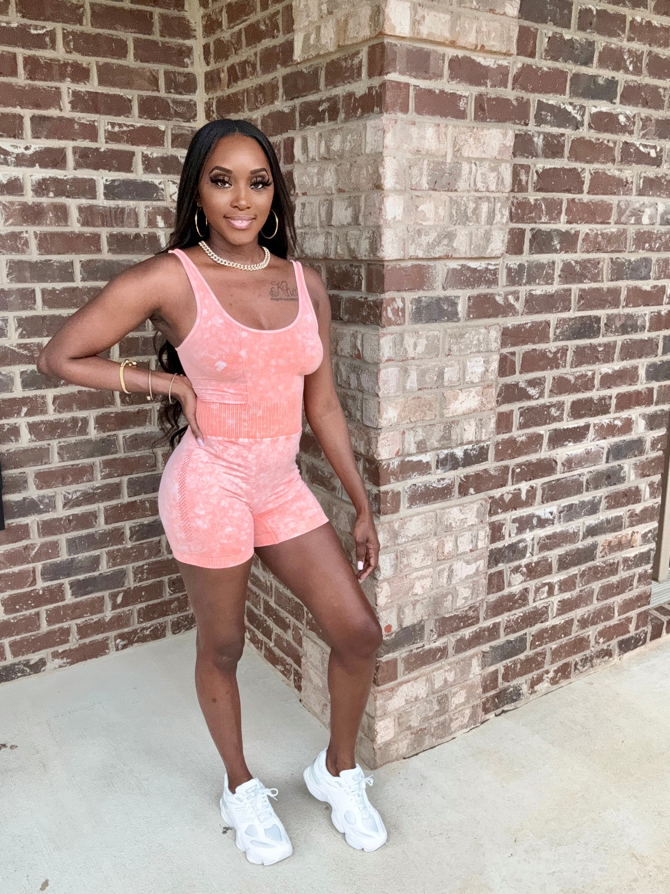 Seamless Romper with Preforated Side Panel Detail and High Waisted Ribbed Waistband
