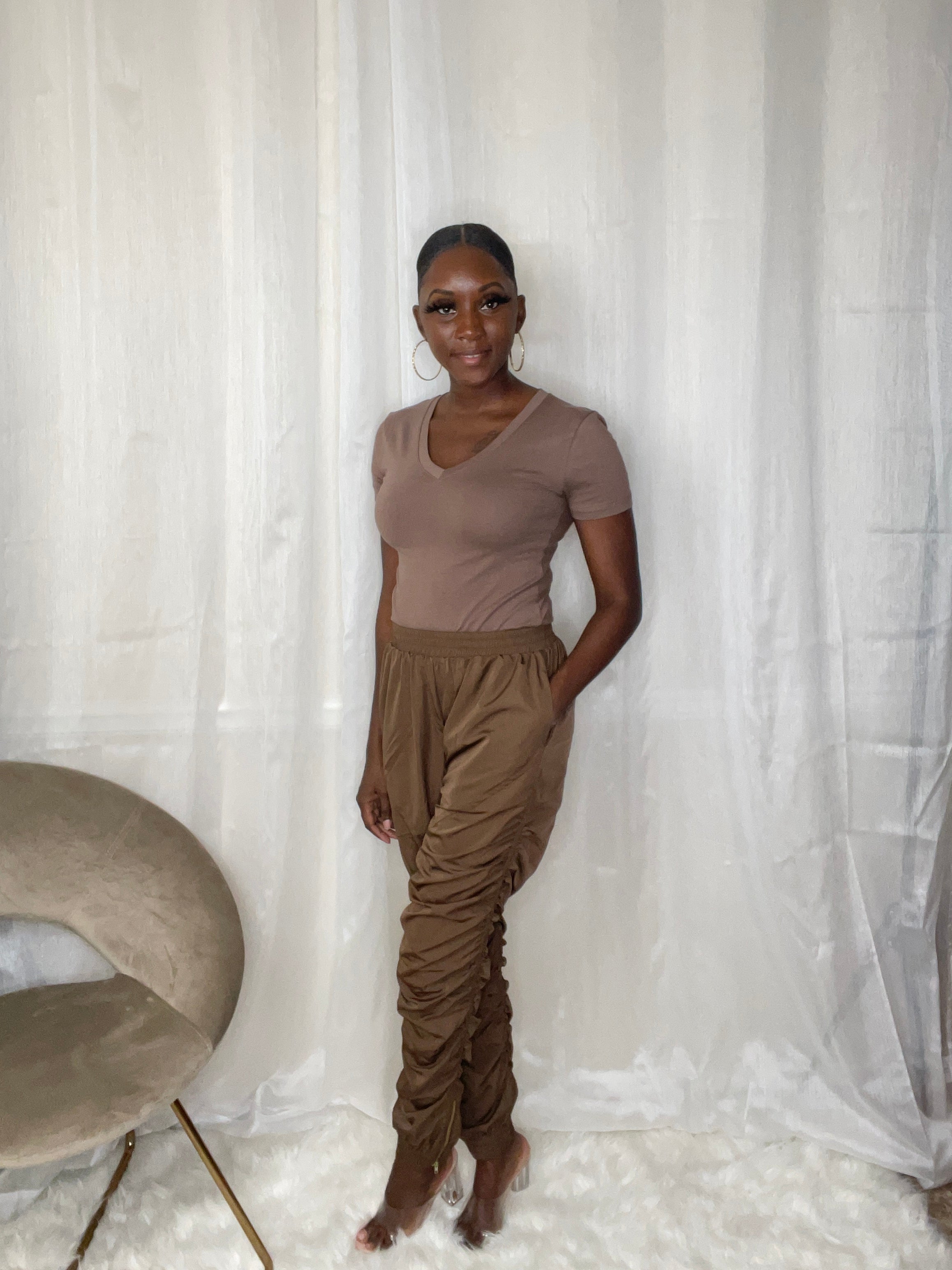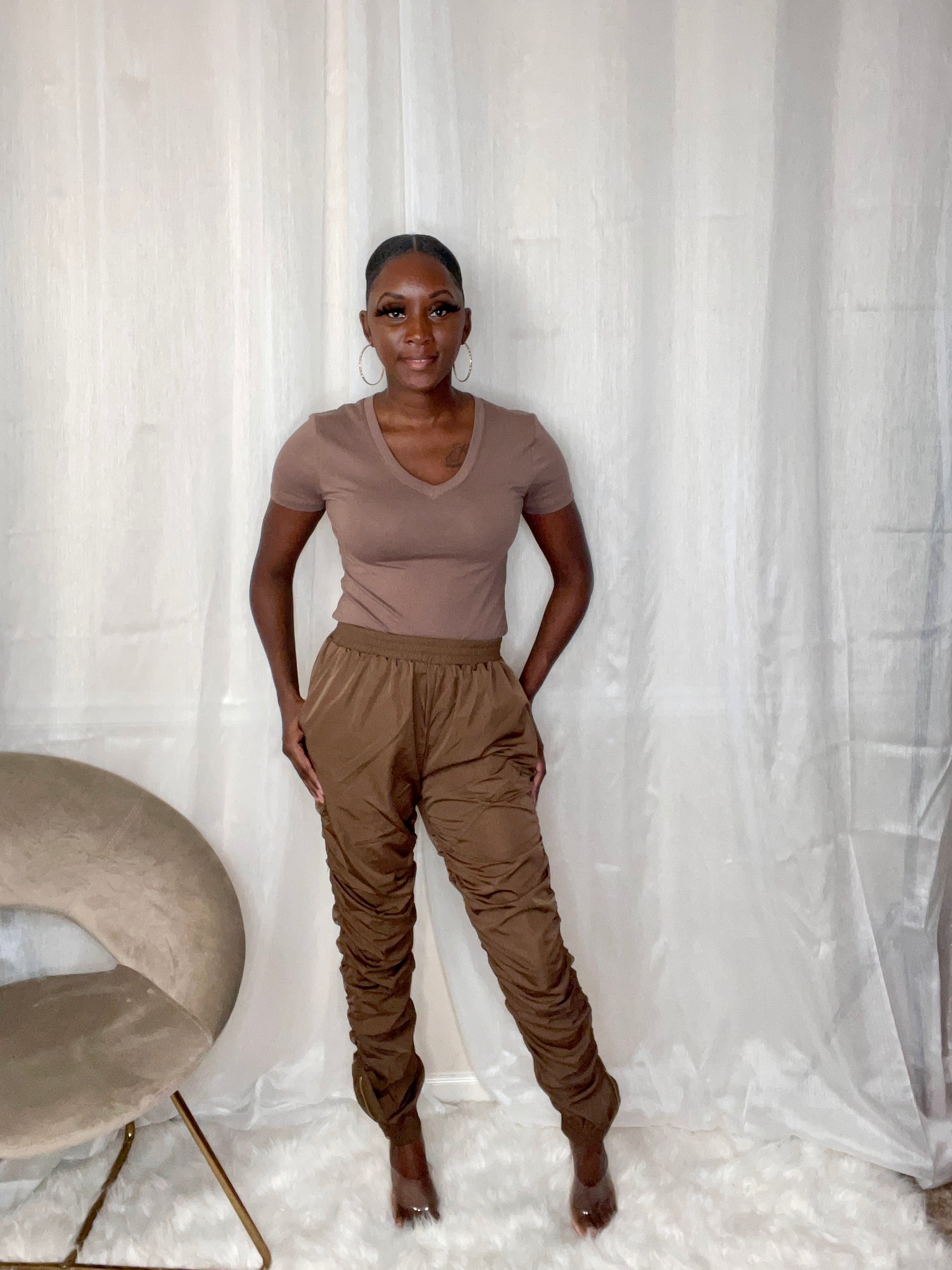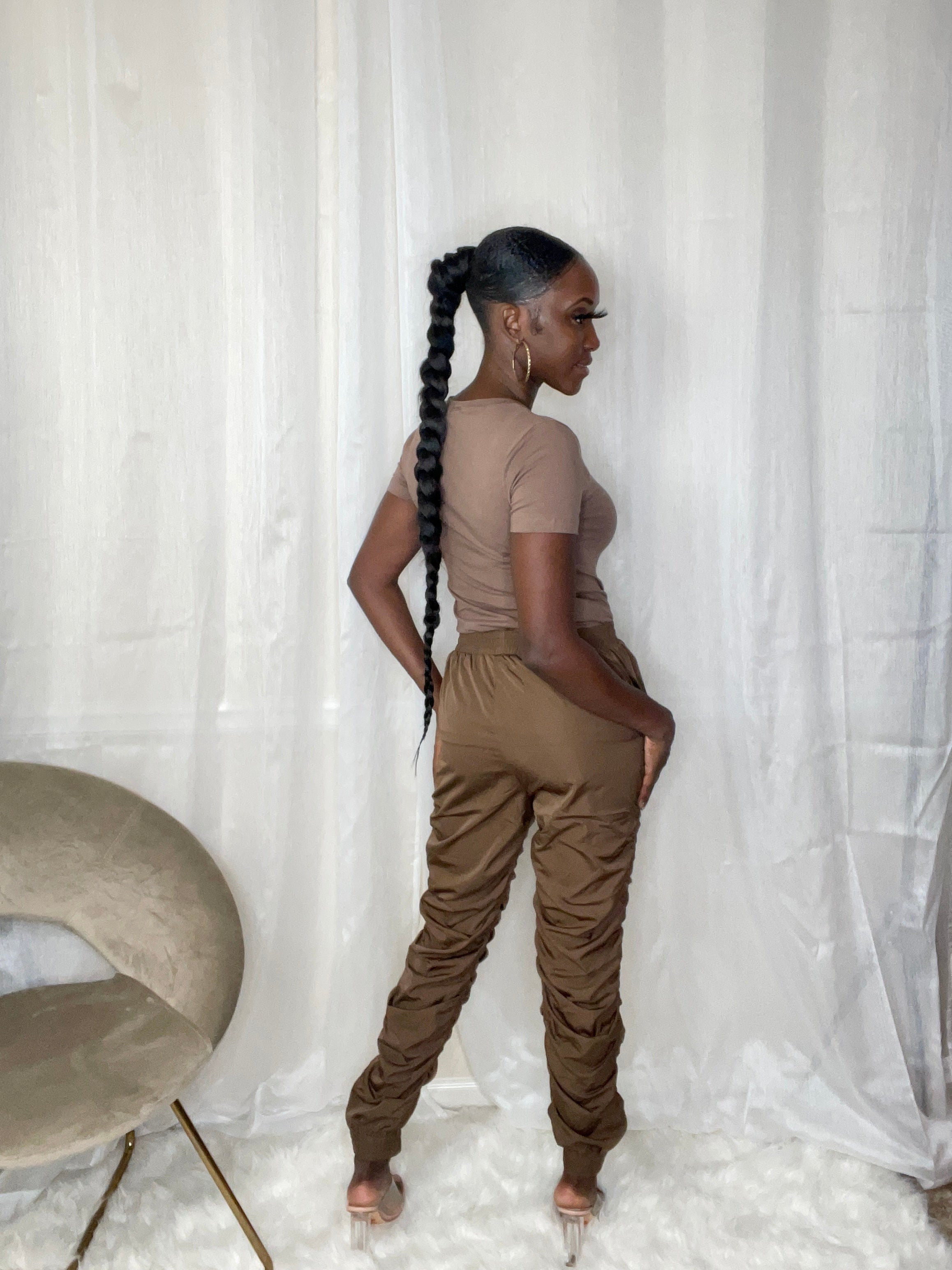 ELASTIC WAIST RUCHED PANTS WITH POCKETS