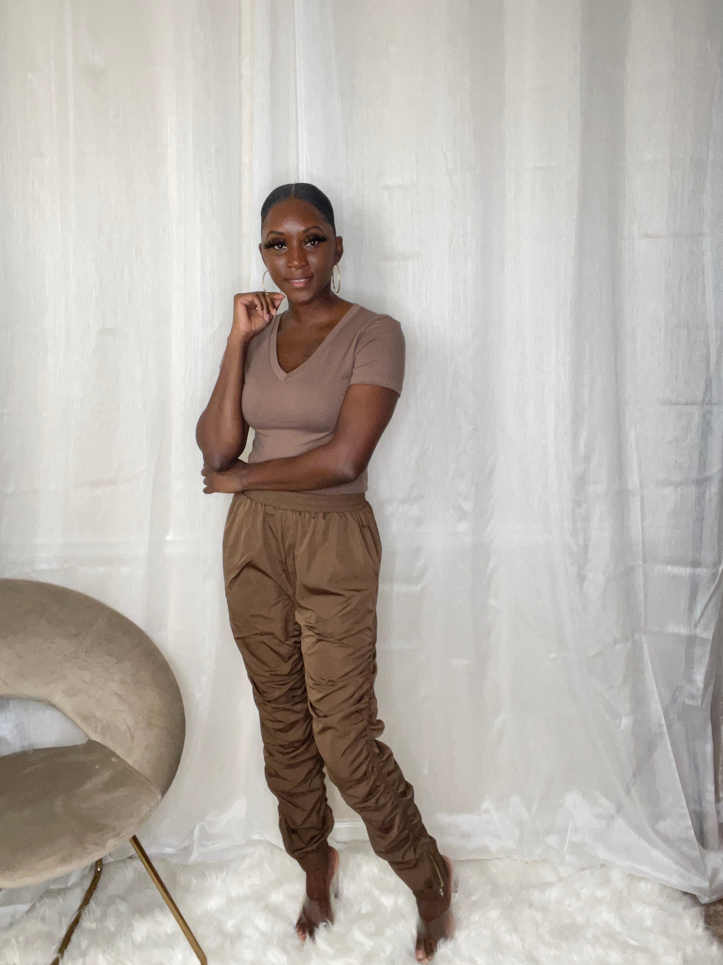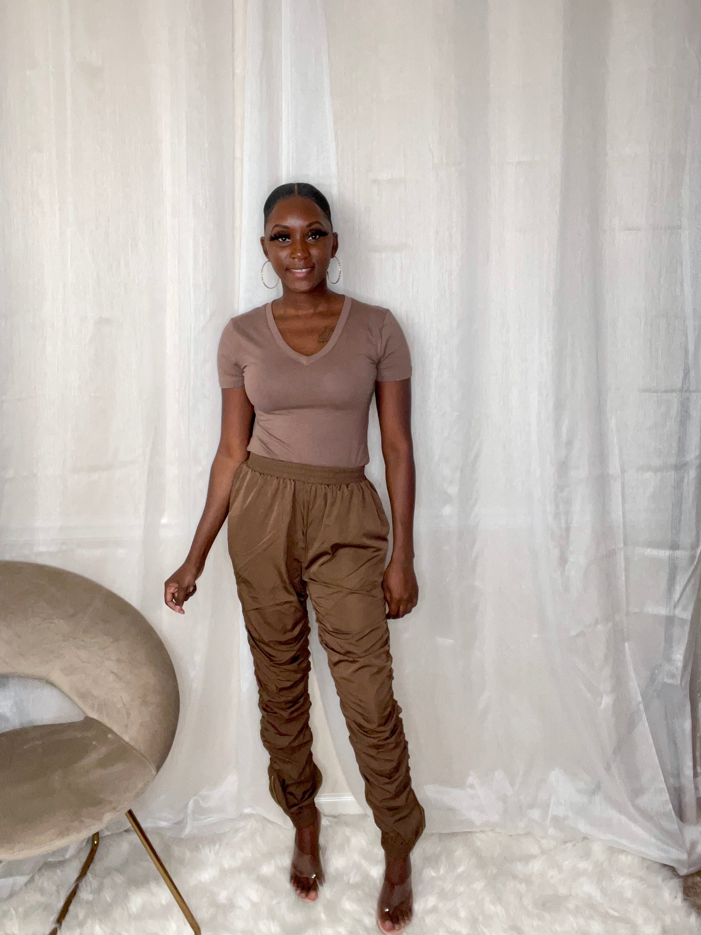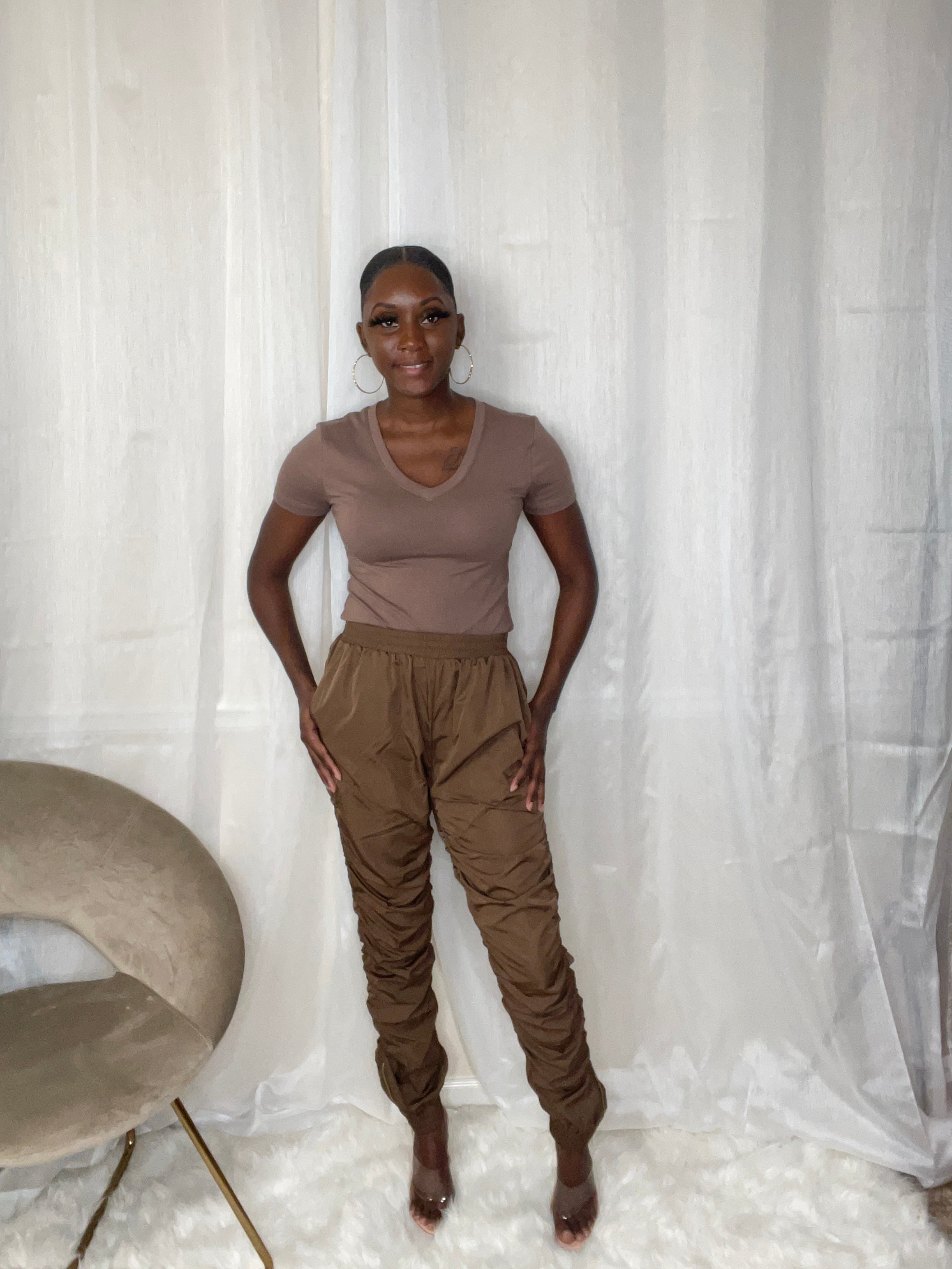 ELASTIC WAIST RUCHED PANTS WITH POCKETS