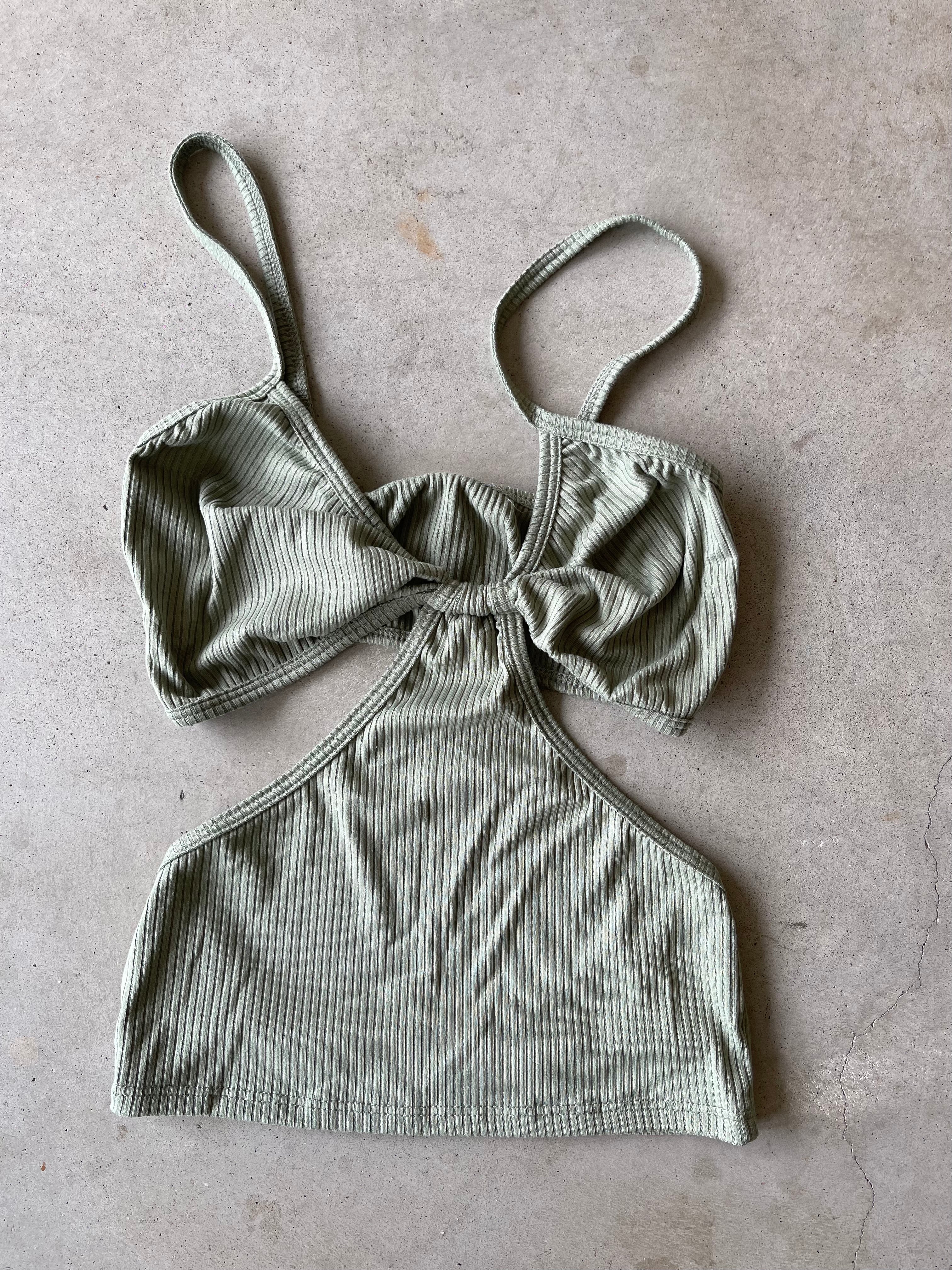 Ribbed Side Cuts Top | Sage