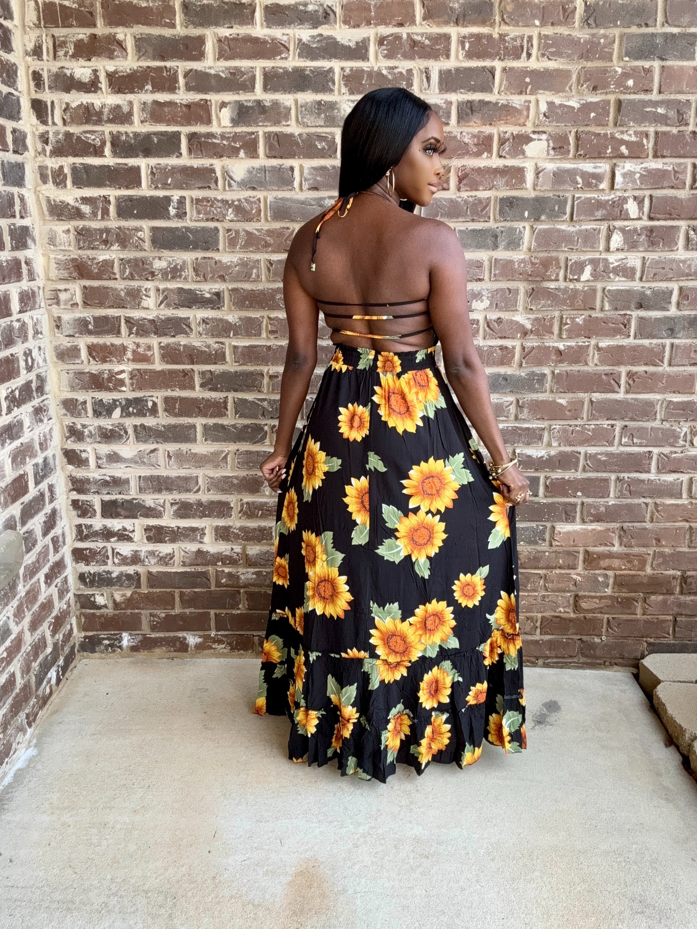 Feel the freedom of flow in our Sunflower Bliss Maxi Dress! The smocked top provides a comfortable fit, while the ruffled hem adds a touch of whimsy. With a flattering elastic 3 line, this dress is perfect for any sunny day adventure. Embrace the bliss of sunflowers in this dress!