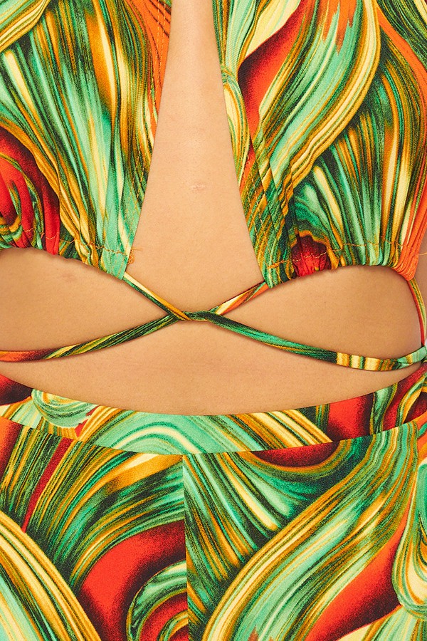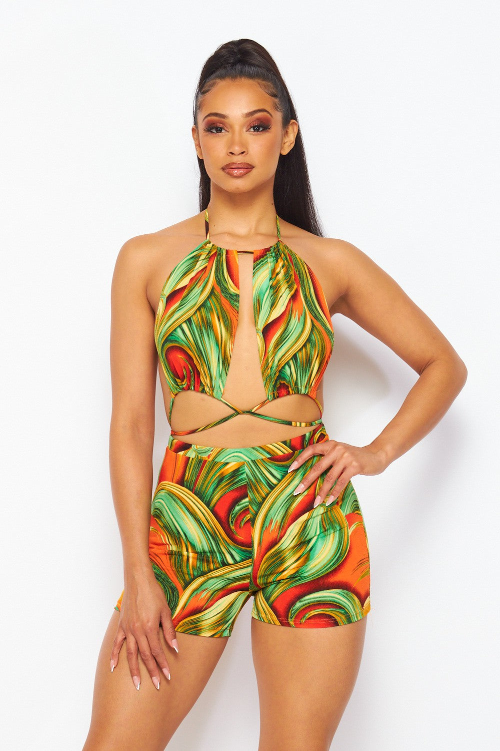 Get ready to turn heads in our Vibrant Swirl Romper! This stunning strappy romper features a built-in bralette for effortless style and comfort. With an elastic waist and great stretch, it's designed to fit and flatter your curves. True to size, this romper is a must-have for any fashion-forward ladies.